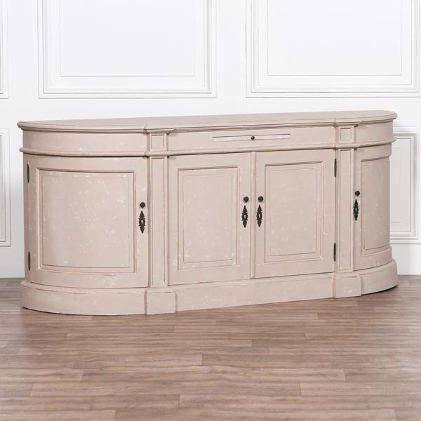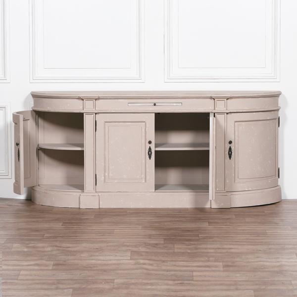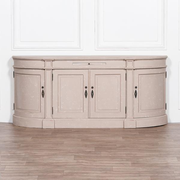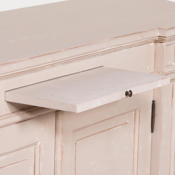 For an absolutely stunning and versatile piece for your home, look no further than the Maison Reproductions distressed sideboard. This beautiful item is adaptable to many rooms around your home, including the dining room and entryway. The sideboard is made from mahogany wood and has a white distressed paint finish that will only continue to get better with age. It has been made to the highest-quality finish as an entire solid unit, so no assembly will be required upon delivery. Inside the sideboard are three fitted shelves as well as four cupboards and a central pullout board for plenty of storage space.