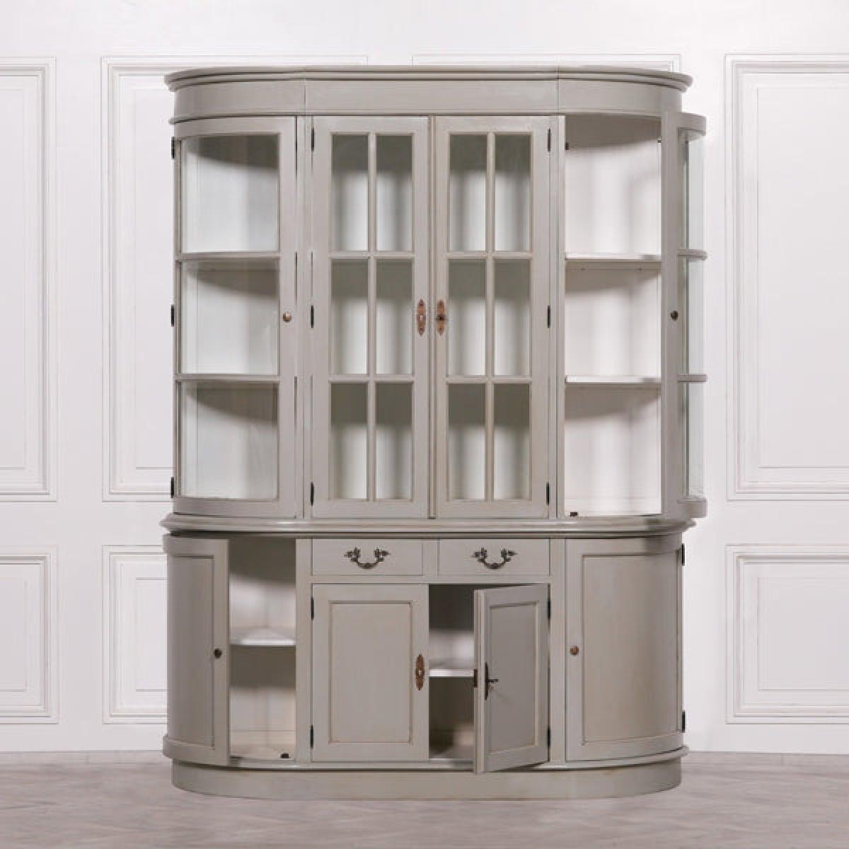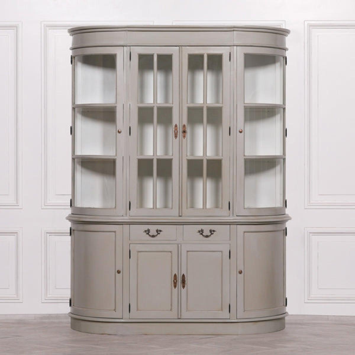 Display your family photos, knick knacks and decorative homeware in style with this gorgeous Maison Reproductions dresser display cabinet. Available in a luscious cream or contemporary grey, this display cabinet could easily become the centrepiece of your living room or dining area. This is a large piece of furniture, measuring at 230cm high, 175cm wide and 46cm in depth, so a designated space in your home will need to be arranged beforehand. The cabinet has a very classical style which can easily fit in with any kind of home décor, whether you prefer the modern look or the more traditional style of interior.