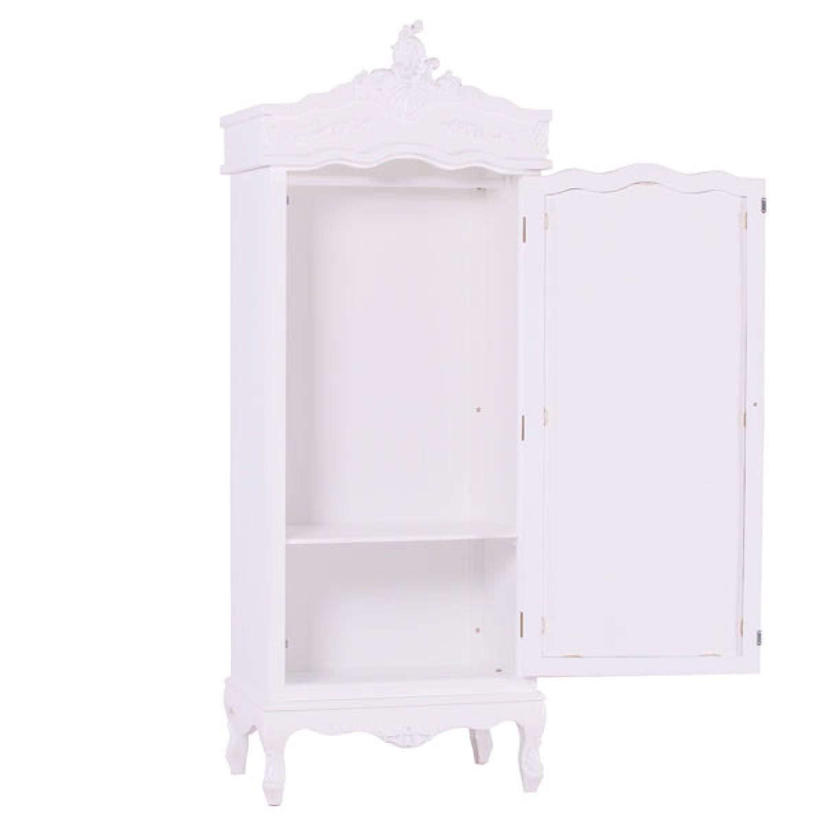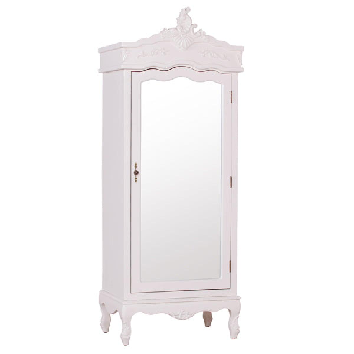 Exuding period French charm, the Maison Reproductions French Armoire Display Cabinet is finished in bright cream, white, gold or silver lacquer and has the option of delightful antique metallic-effect detailing. This striking piece would make a magnificent addition to a stylish boudoir and can be purchased with one or two hinged doors. This versatile cabinet is not just exquisite to look at; there is plenty of storage space inside with options of hanging rails and shelves. The front has a mirror that bounces light around the room and gives the illusion of space in addition to being a useful way to check your outfit. Double Door -. H:214. 5 x W:110 x D:535 cm. Assembly Required: Yes. Please note - this product requires the anti-topple safety bracket provided with the wardrobe to be fitted to a wall.
