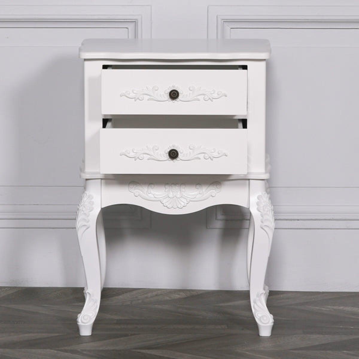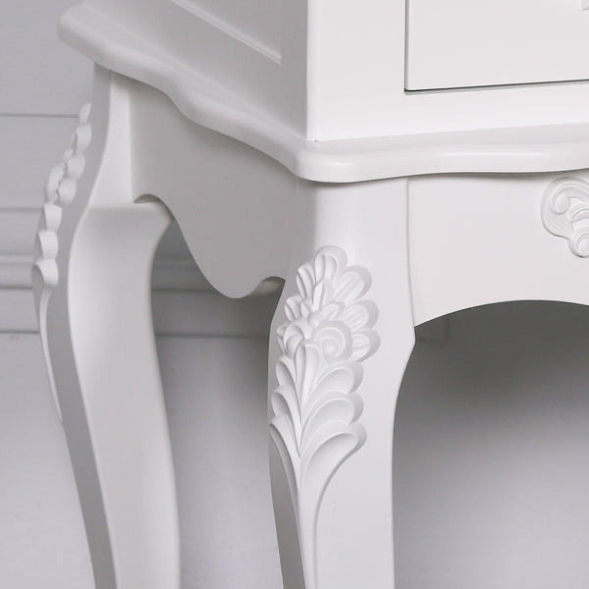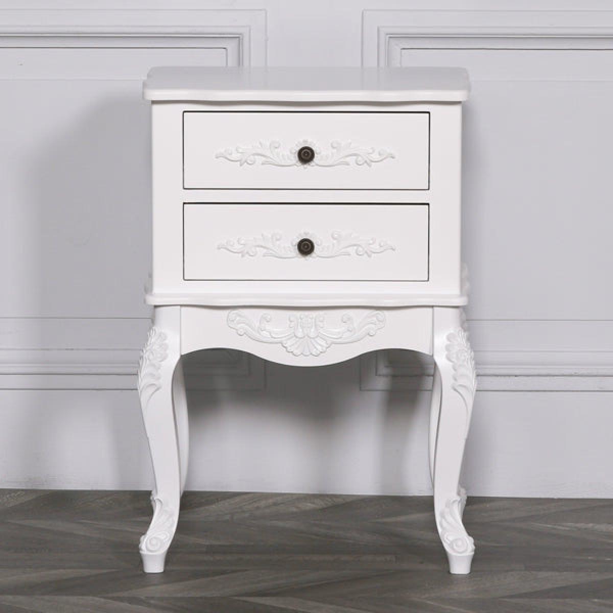 Your stylish period boudoir is crying out for the Maison Reproductions French bedside table to finish off the classic vibe with a flourish. This exquisite bedside table stands 70cm high, making it the perfect height for a bedside lamp and your night-time reading material. Finished in white or cream lacquer and with delicate detail on the shaped legs, this stylish piece also offers plenty of storage space in two generous drawers with contrasting handles. Why not buy two of these tables and place them on either side of your bed to complete the gorgeous classic French style of your master bedroom?.