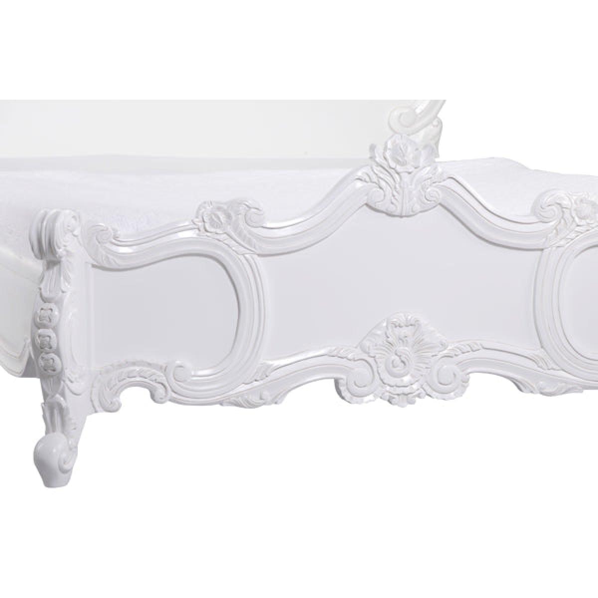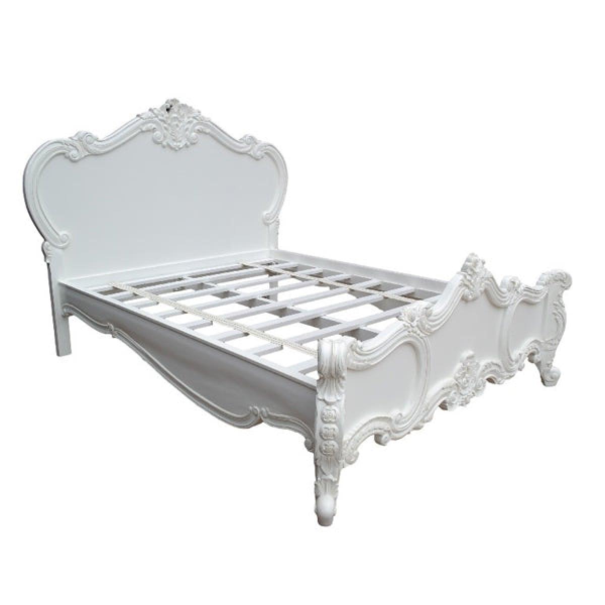 Prepare to lounge in luxury with this beautiful French carved rose cherub bed. With beautiful designs intricately carved into the wood, this bed is a must-have for lovers of extravagant furniture. The head of the bed frame, the bottom and two of the legs include gorgeous rose-themed detailing that wouldn’t be out of place in a stately home or manor house. The cherub bed frame is available in three different sizes: Double, King and Super King, allowing for some flexibility if you are worried about sizing issues. This piece is sure to catch some eyes while you snuggle up to get forty winks. H:142 x W:167 x D:210 cm. H:183 x W:198 cm.