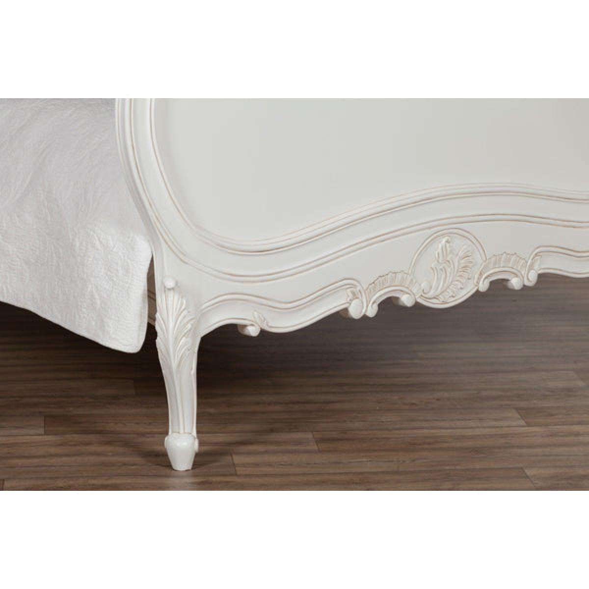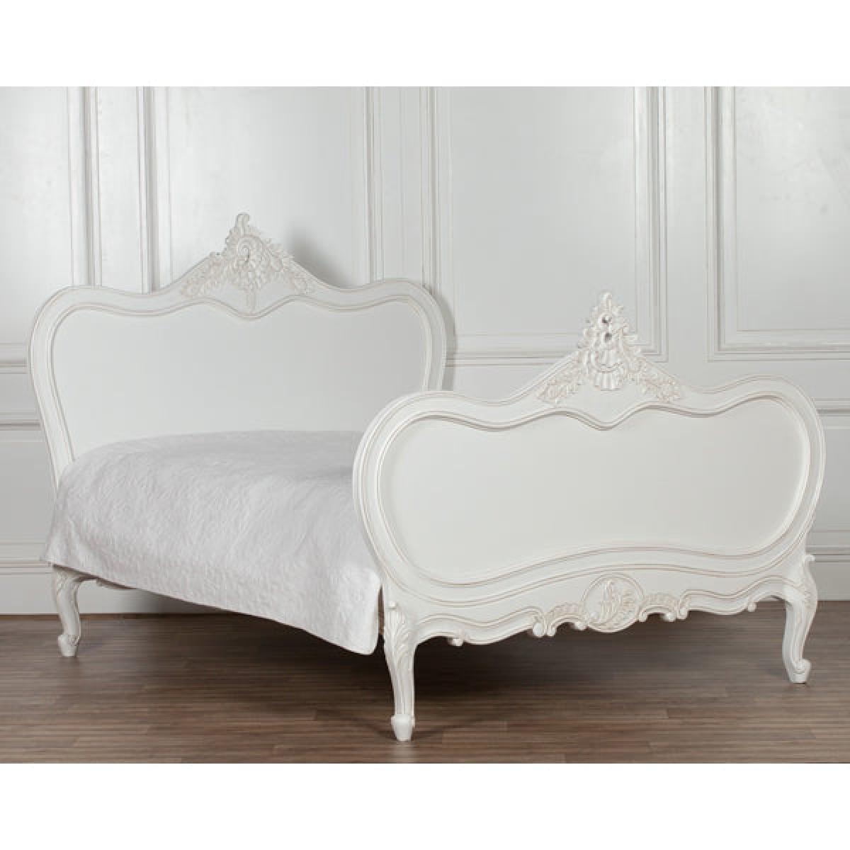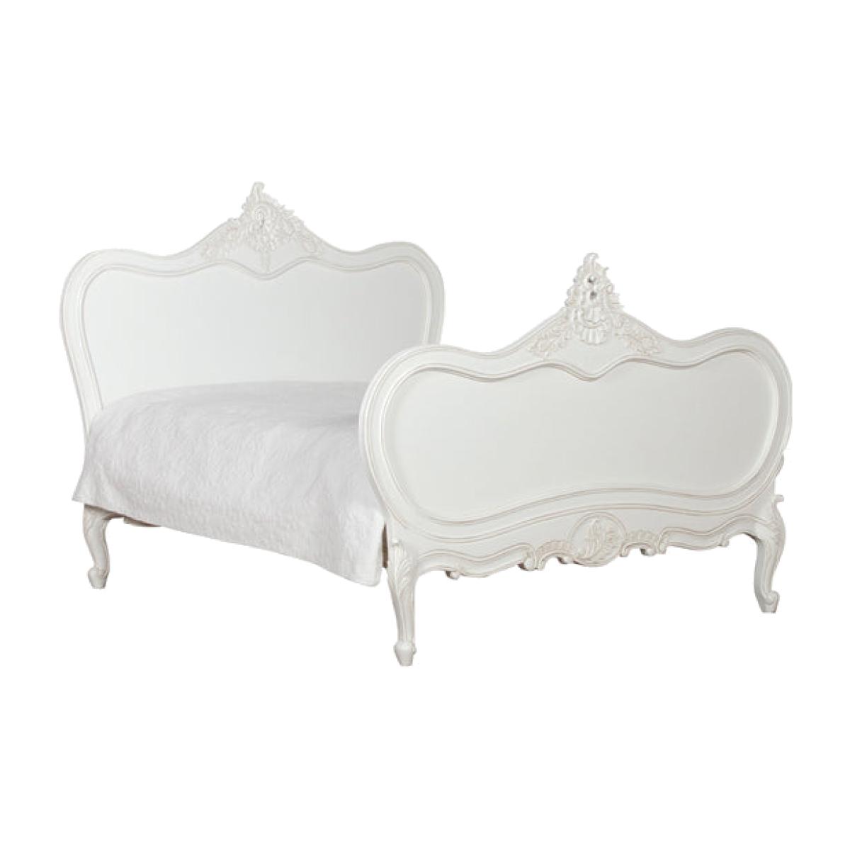 The Maison Reproductions French Chateau painted bed is exquisitely ornate. Made entirely of magnificent mahogany, this beautiful bed is painted ivory white to complete its chic provincial aesthetic. Available in single (121cm wide, 205cm diameter, 128cm high), double (160cm wide, 202cm diameter, 146cm high) and king-size (160cm wide, 210cm diameter, 146cm high) and festooned with intricate detail, such as a sublime leaf motif along the base, this bed delivers a rustic aesthetic that decorating dreams are made of. A wonderful, evocative addition to your home, guest or child’s bedroom, this painted bed is perfect for displaying splashes of modern colour or sumptuous French fabrics. H:146 x W:160 x D:202 cm. H:128 x W:121 x D:205 cm.