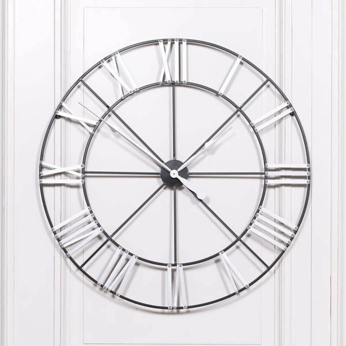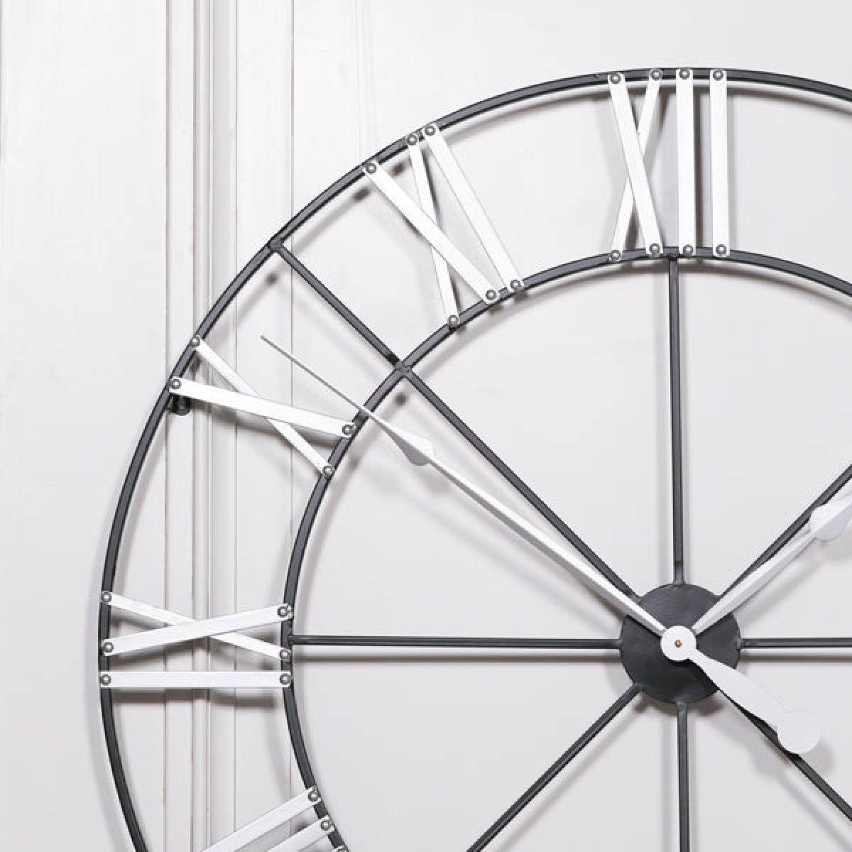 It's time to make a statement with this impressive skeleton style large metal wall clock. Featuring a circular oversized black metal design with white hands, and bold white Roman numeral markers, this wall clock brought to you by Maison Reproductions will make a striking addition to your room of choice. This wall clock combines contemporary style with vintage appeal and its backless, skeletal styling means it will uniquely accentuate your own home styling. Measuring in at 102cm in height and 102cm in width, this is a timeless timepiece that possesses the attributes to sit fabulously on both traditional and modern interiors.