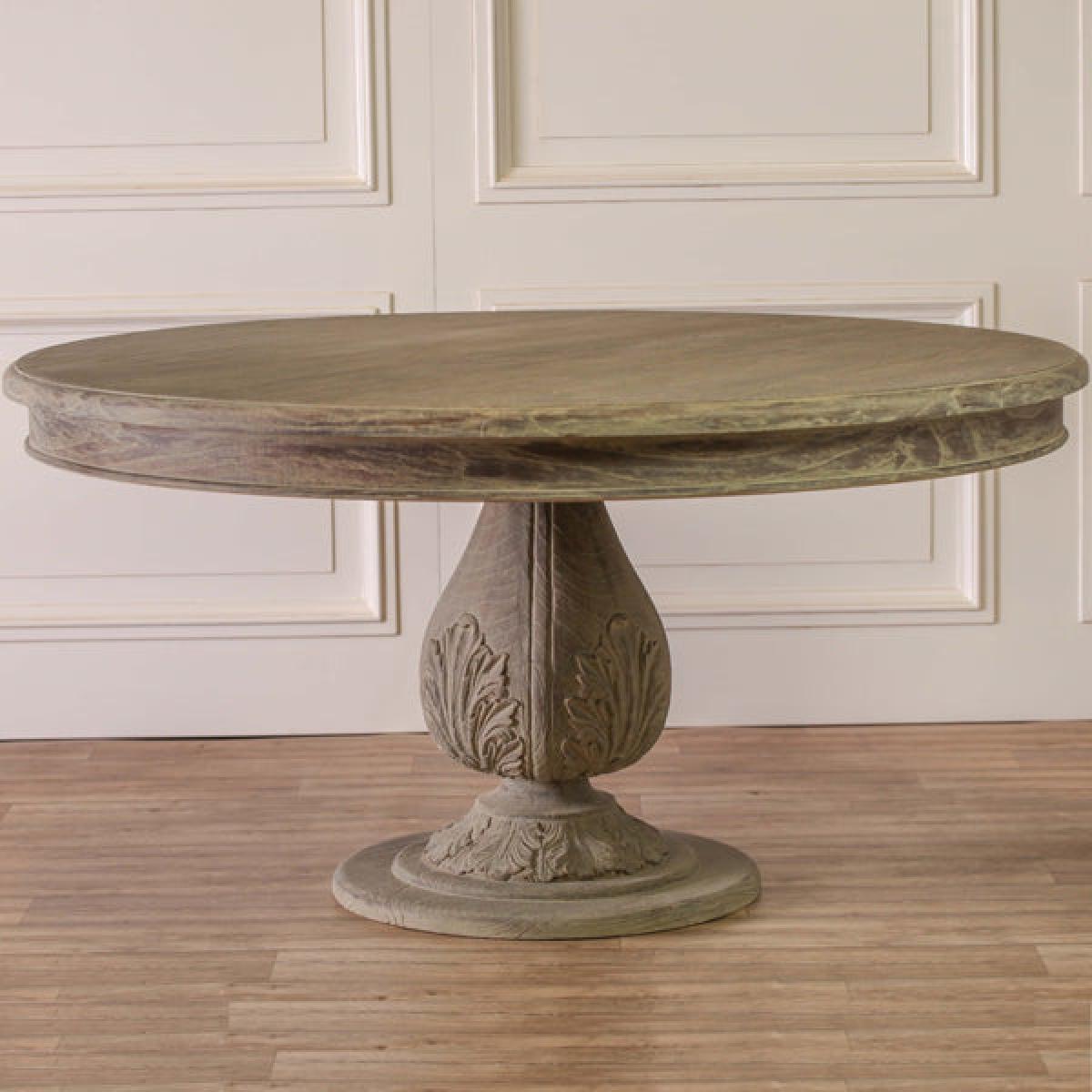 Maison Reproductions' rustic acorn dining table will add a charming touch of homeliness to your dining room. The table's pedestal is decorated with a beautifully detailed oak leaf pattern. The table comes in two sizes, so you can easily choose which version is most suitable for your home. The table is available to buy with dimensions H:785 x W:120 x D:120cm or H:765 x W:150 x D:150. It's perfect to mix and match with other high-quality wooden items available as part of Maison Reproductions' wooden furniture range; available items in this range include tables, bookcases, writing desks and many others. H:765 x W:150 x D:150 cm.