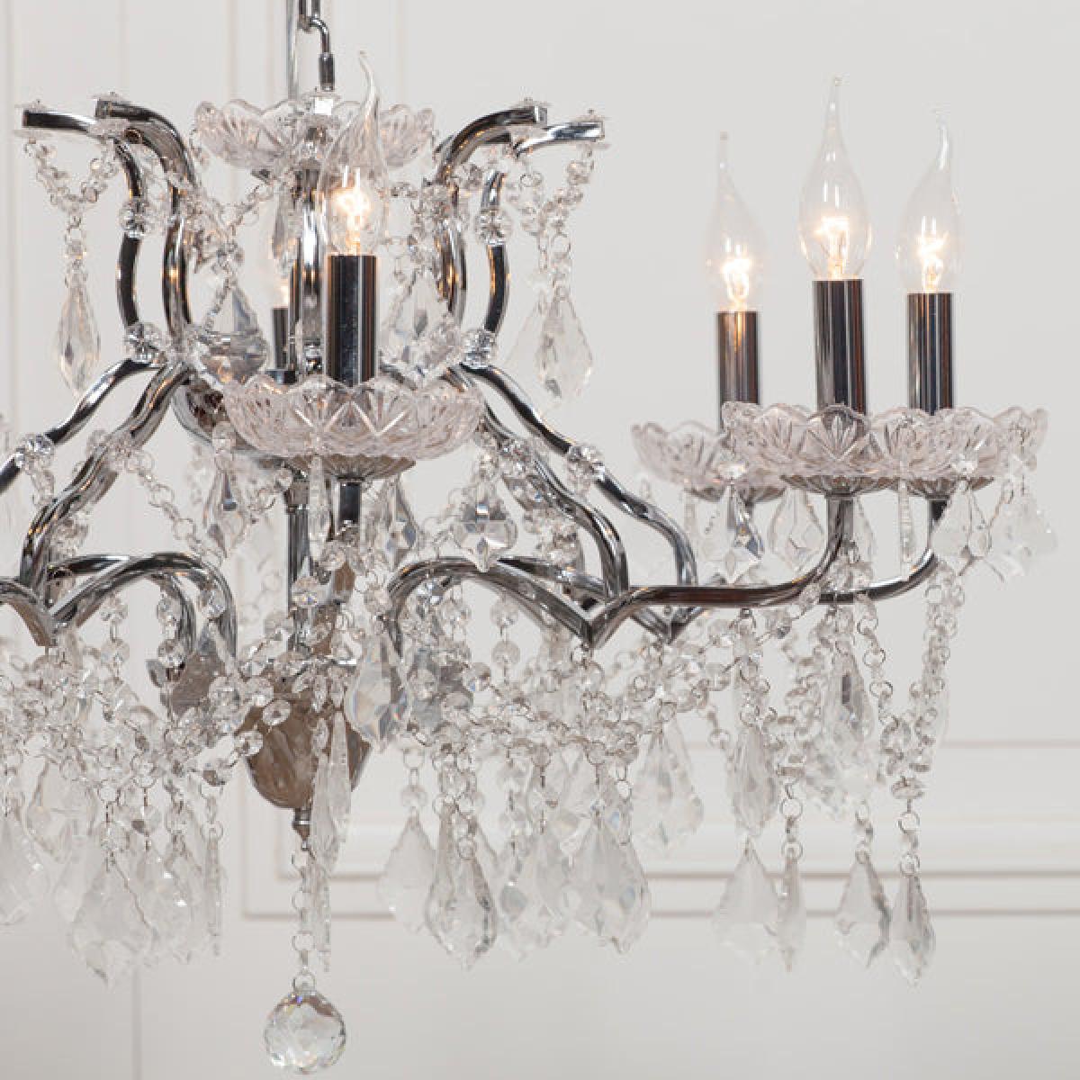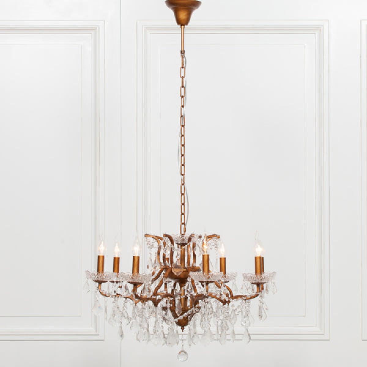I love this chandelier for its elegant yet versatile design - the shallow cut glass and gold finish make it a real statement piece without overwhelming a space. It works particularly well in classic or traditional interiors, such as grand dining rooms or living areas, where it can bring a touch of luxe without feeling fussy. When styling, consider pairing it with understated furniture to let the chandelier be the focal point, and use warm, ambient lighting around it to enhance its golden tones. Practical tips include hanging it at an optimal height over dining tables or in high-ceiling spaces, and balancing its ornate style with more minimalist accessories elsewhere in the room. Its eight branches make it a good choice for slightly larger rooms that benefit from both illumination and visual interest.