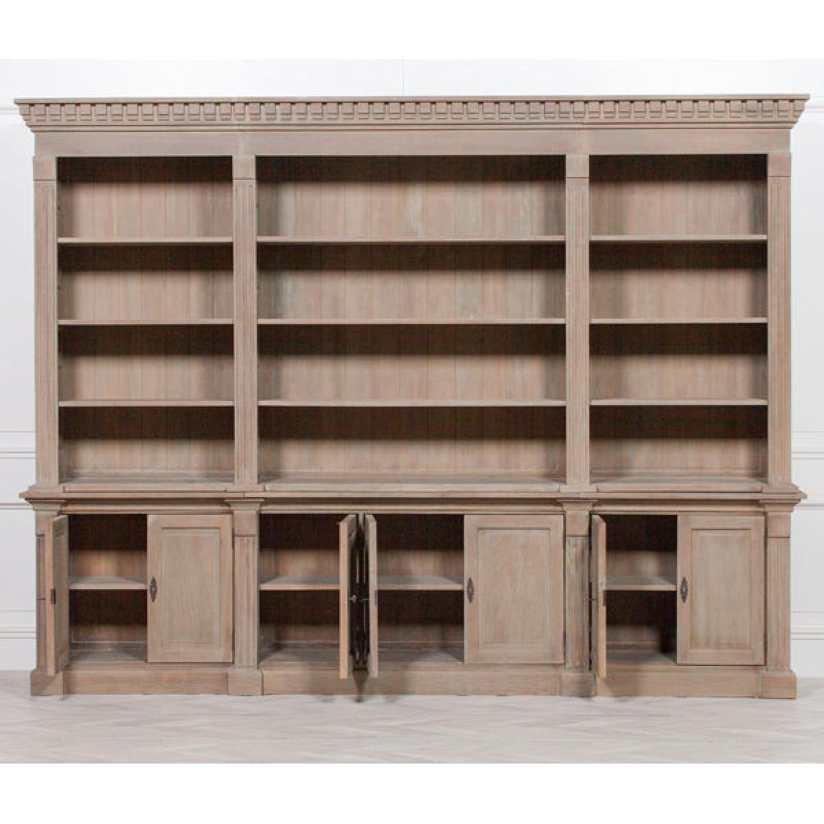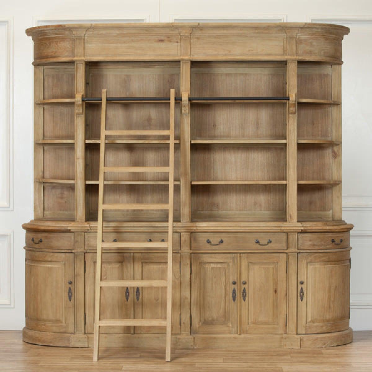 Choose an elegant and extensive showcase for your treasured books with this Maison Reproductions wooden bookcase. This rustic piece can house a huge collection across eight full-length shelves, eight smaller corner shelves, four cupboards and four drawers. Combining traditional aesthetics with modern practicality, this piece will inhabit your living space effortlessly and stylishly. The rounded ends make this item safe and comfortable to place anywhere in the room you choose. A matching ladder is included to assist you in reaching the higher shelves with ease. The dimensions are as follows: maximum height of 224cm, maximum width of 240. 5cm, and maximum depth of 45. 5cm. H:224 x W:2405 x D:455 cm. H:236 x W:3115 x D:45 cm. H:240 x W:270 x D:445 cm.