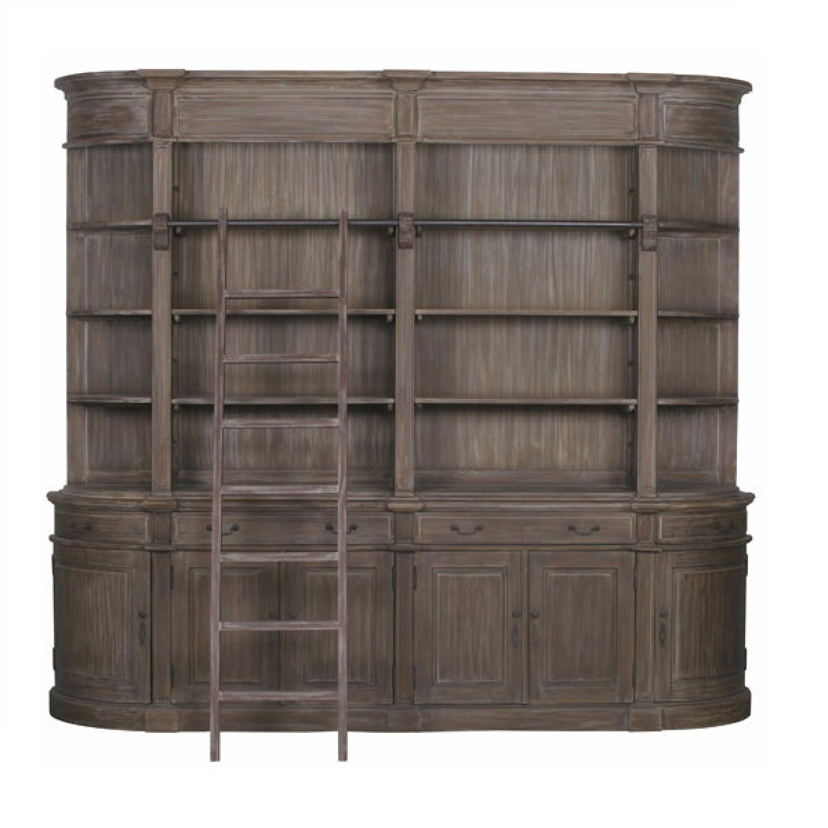 Choose an elegant and extensive showcase for your treasured books with this Maison Reproductions wooden bookcase. This rustic piece can house a huge collection across eight full-length shelves, eight smaller corner shelves, four cupboards and four drawers. Combining traditional aesthetics with modern practicality, this piece will inhabit your living space effortlessly and stylishly. The rounded ends make this item safe and comfortable to place anywhere in the room you choose. A matching ladder is included to assist you in reaching the higher shelves with ease. The dimensions are as follows: maximum height of 224cm, maximum width of 240. 5cm, and maximum depth of 45. 5cm. H:224 x W:2405 x D:455 cm. H:236 x W:3115 x D:45 cm. H:240 x W:270 x D:445 cm.