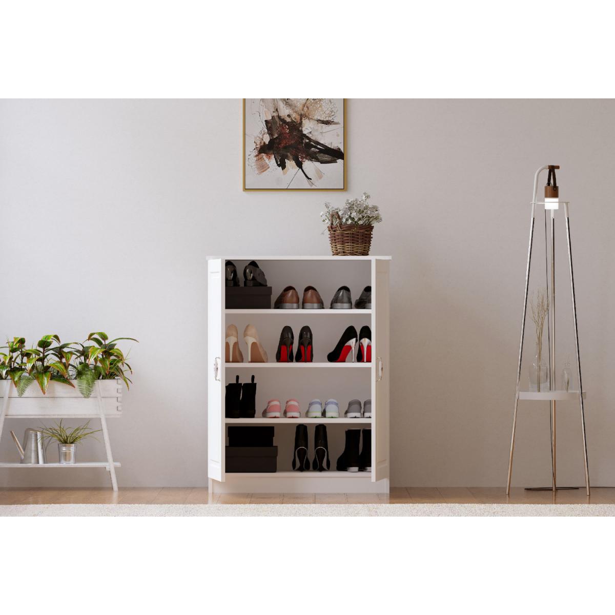 MASION represents the unique blend of modern furniture with the country furniture. Featuring 4 levels of shelving finished with antique handles this shoe cabinet will keep up to 16 pair of shoes. Colour White Material Membrane coated MDF board, finished with CNC process. Dimensions Width70cm,Height100cm,Depth35cm. Delivered flat packed in 2x Boxes. Total Gross Weight30.9kg.