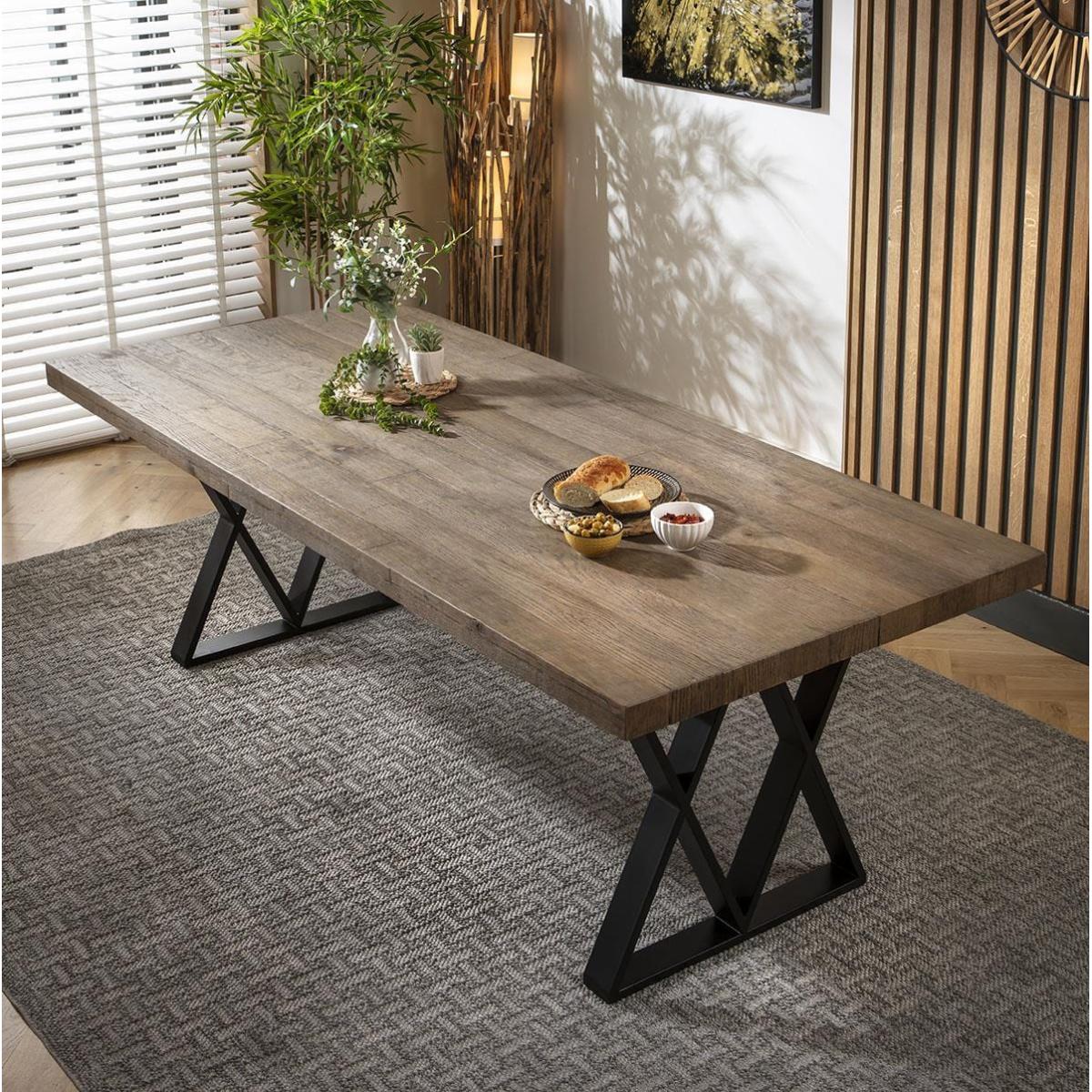This 8 seater dining table and chairs set includes golden brown fabric swivel dining chairs, featuring a wide backrest, high arms and a metal frame, with this large dining room table featuring a reclaimed oak tabletop and black metal legs. This modern dining set is crafted for durability and comfort. Discover the perfect blend of style and functionality with this 8-seater dining table. Crafted for modern living, this large dining room table features a bold, industrial design. Its reclaimed oak tabletop exudes character, making it the ideal large wooden dining table for any kitchen or dining space. Upgrade your space with the 8 golden brown fabric swivel dining chairs included in this set. Featuring a wide, wrap-around backrest with high arms and a black powder-coated metal frame, this unique dining chair offers exceptional comfort and a chic aesthetic for contemporary dining rooms or kitchens. This 8 seater dining set combines modern Maisy chairs with the stunning Glasgow table. Whether you love the Maisy chairs and would like to purchase them individually, or you think the Glasgow table would complete your dining room decor better with another chair, you can easily mix and match our modern dining tables and chairs to curate something truly unique. Table Size W230cm D100cm H76cm Chair Size W66cm D84cm H82cm Modern Dining Table And Chairs Set For 8