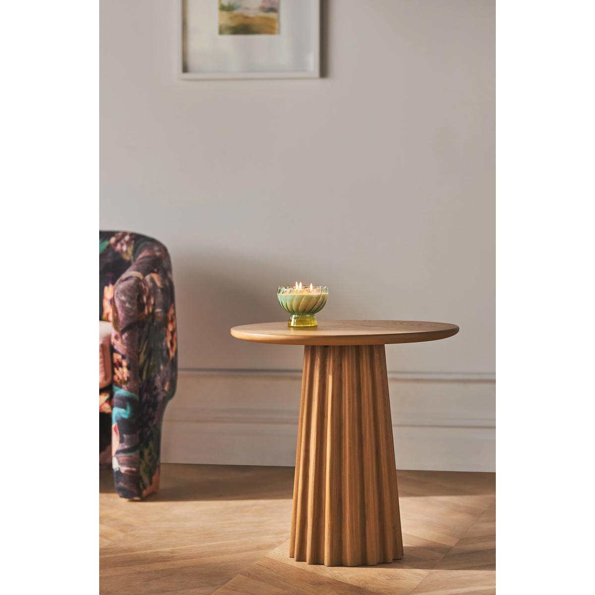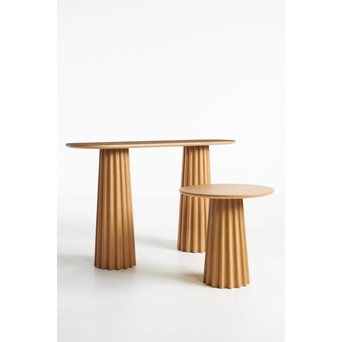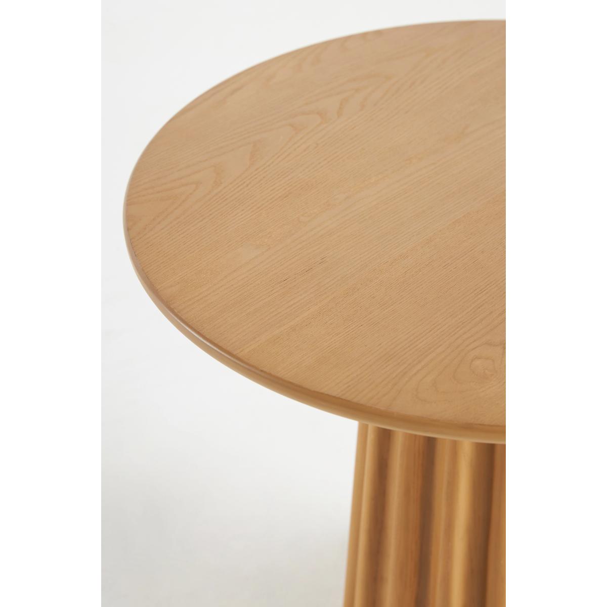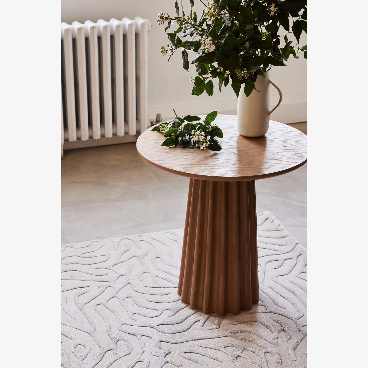 A fusion of wood craftsmanship and modern design, this pedestal side table fits in small-space living areas with ease, proving that even petite floor plans can have major impact * Ash wood side table with a resin base * Slight variation in natural wood texture will occur * Sealed with clear lacquer for protection * Wipe clean with soft cloth. Avoid using chemical cleaners * This piece is intended for indoor use * Some assembly required * Imported