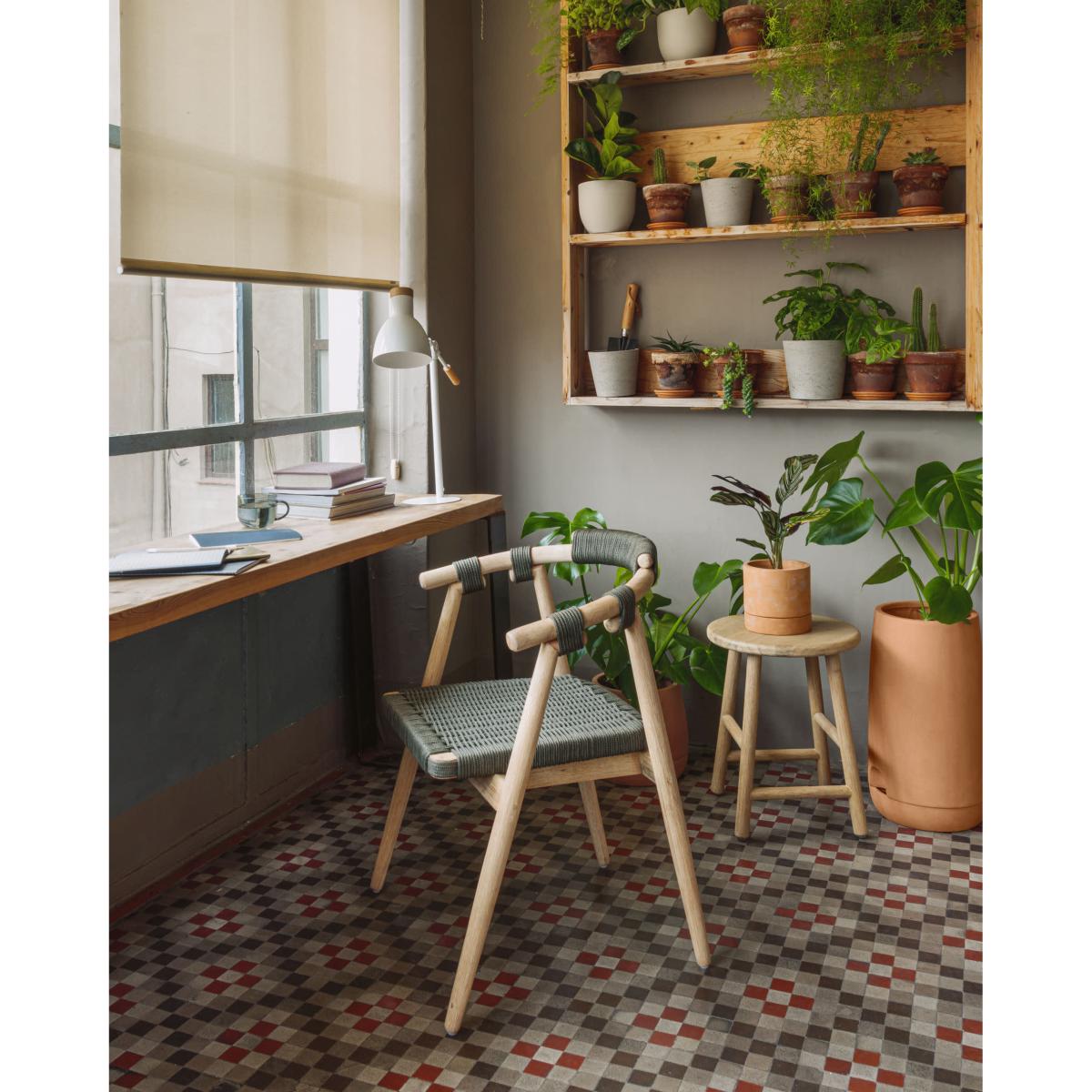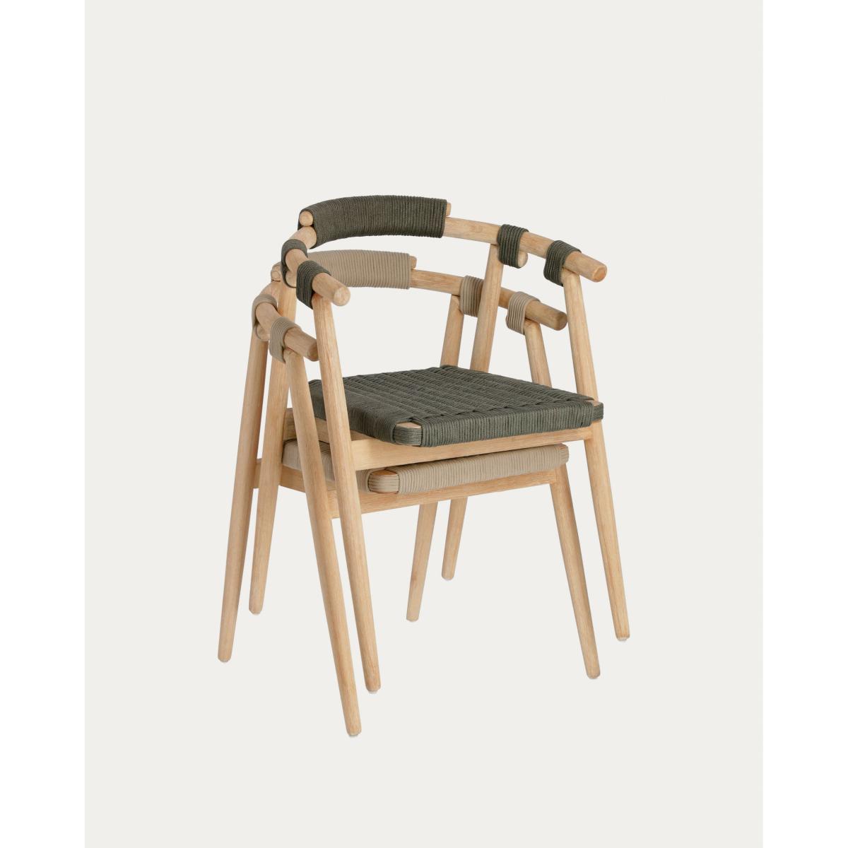 Majela chair in solid 100% FSC eucalyptus with oak-effect finish and green rope
