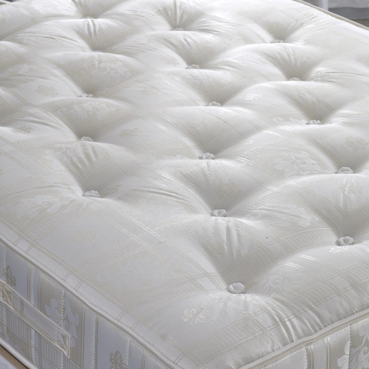 The Majestic 1000 Pocket Mattress is a sumptuous mattress with 1000 pocket springs and a deluxe polyester filling that provides excellent support and comfort. The mattress is also traditionally hand tufted, features a no roll system that prevents rolling during the night and also includes air vents that allow circulation of air throughout the mattress. The individually nested pocket springs work independently to provide you with full body support. Finished with a quality Damask fabric with an elegant floral pattern. A popular no-nonsense mattress.