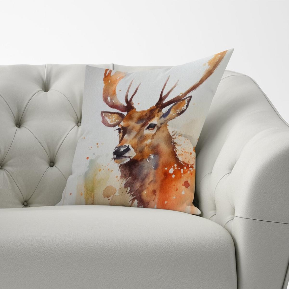 I love this cushion for its vibrant yellow hue and striking stag watercolour design, which makes it a versatile statement piece. It works particularly well in contemporary or Scandinavian interiors, adding a pop of colour and visual interest to neutral sofas or armchairs. Practical styling tips include pairing it with other cushions in muted tones for balance, or mixing with textured throws for a layered, cosy look. Its playful yet sophisticated design also makes it suitable for rooms aiming to blend modern style with a touch of nature-inspired charm.