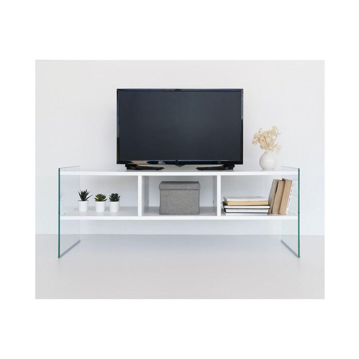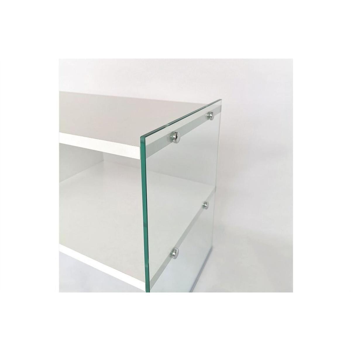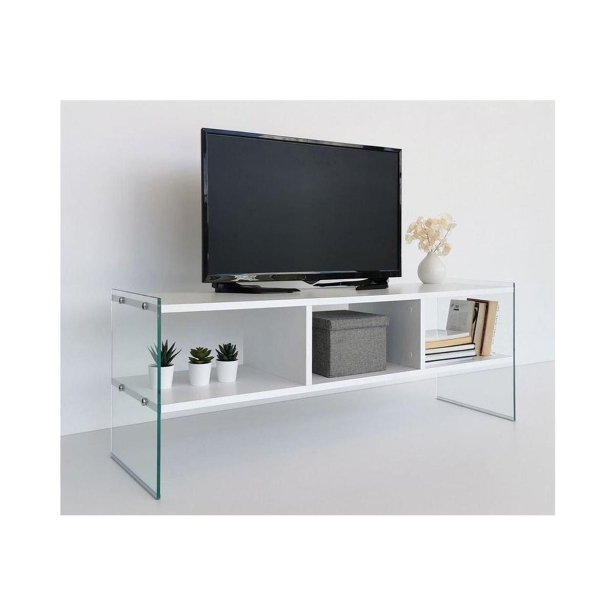 Streamlined in style and innovative in design! Its linear frame boasts an attractive wood grain finish, while its tempered glass shelving and open-frame concept offer minimalist appeal. The TV unit is made of high-quality 18 mm manufactured wood and 8 mm tempered glass. Perfect for hosting your consoles and other media clutter, this stand features easy wire management thanks to its minimalist silhouette. Safety feature The product is made of tempered glass material. Thanks to its material, in the event of an accident, the product will be divided into harmless granular pieces instead of large shards, which will prevent serious injuries to people.