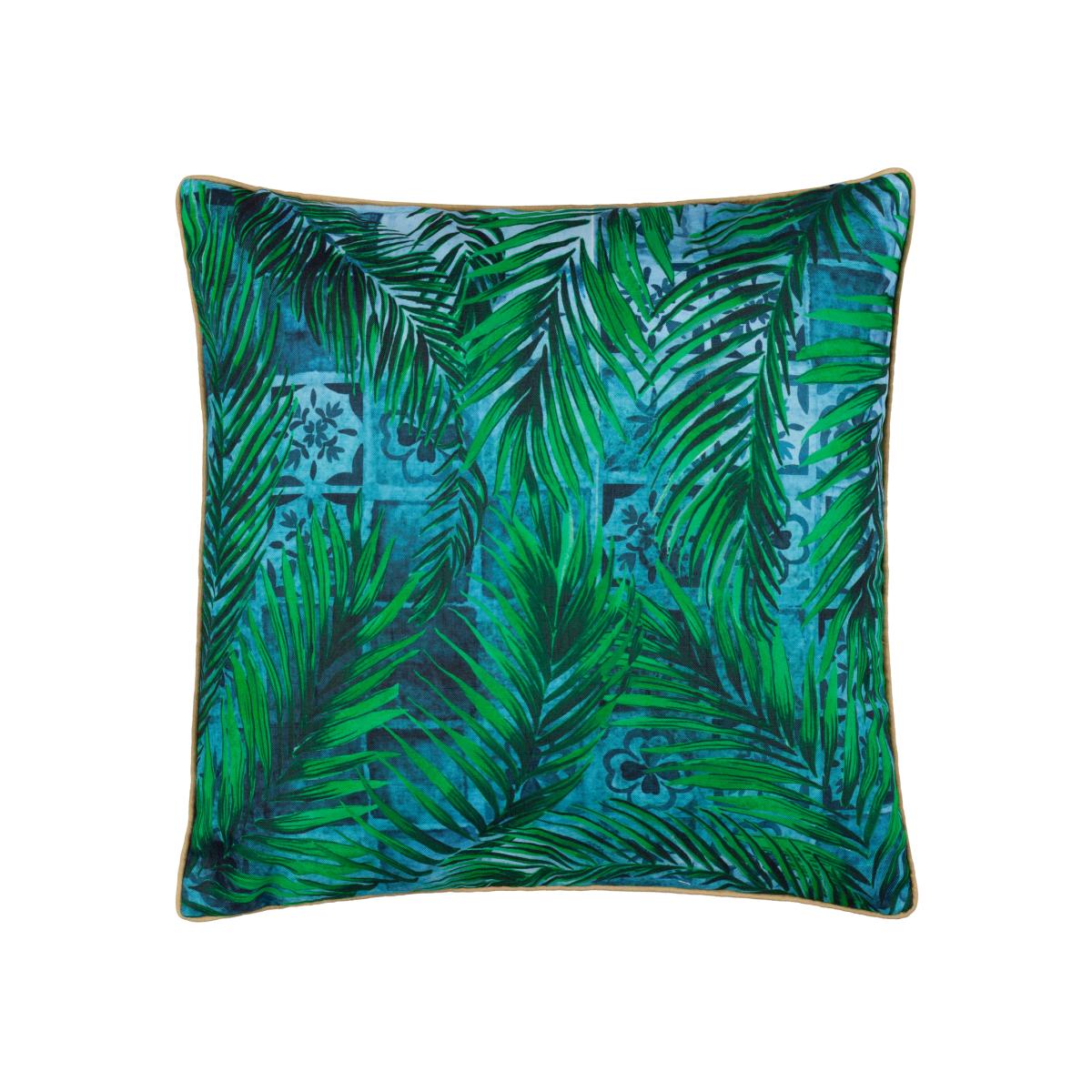 Transform your outdoor space into a serene Moroccan escape with the Majorelle Palm Tropical Outdoor Cushion. This luxurious cushion, adorned with hand-painted palm leaves and intricate Moroccan prints, invites you to unwind amidst a lush jungle setting. Crafted from soft-touch material, it is thoughtfully treated for outdoor durability, ensuring both comfort and longevity. The matching piping adds an element of sophistication, while the cushion's design promises a harmonious blend of elegance and detail. Perfect for those who value exclusivity and refined craftsmanship, the Majorelle cushion is your passport to relaxation and style in one exquisite piece.