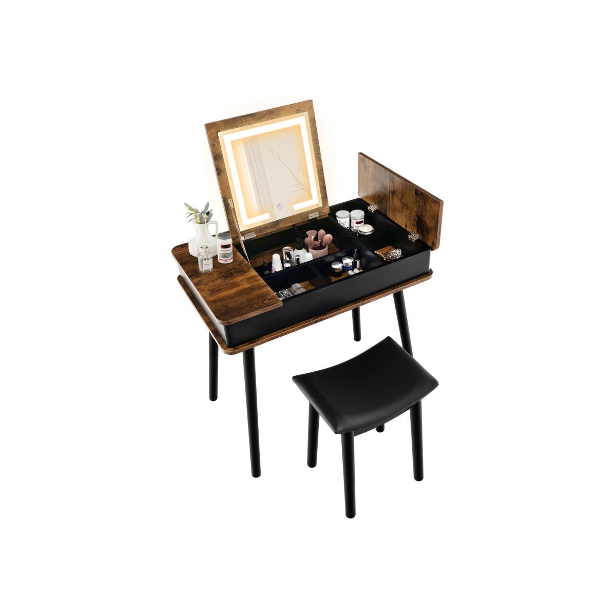 Makeup is an elegant thing while a well-designed dressing table is very crucial for every beauty. Our makeup vanity table set is committed to keeping your convenience in mind. Unique Flip Top Mirror with 3 hidden side containers and 4 hidden middle compartments offer ample and classified storage space for cosmetics, jewelry, skincare products, etc. Inner space with USB charging port also provides convenience. Moreover, you can also turn the makeup table into a writing desk or laptop desk.