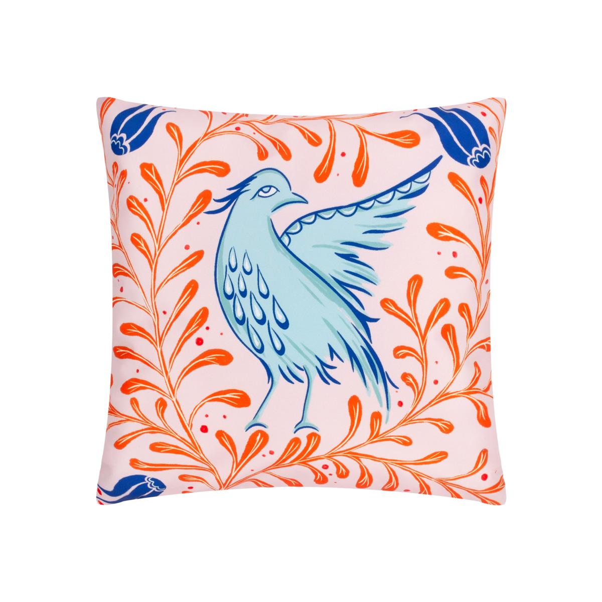 Inspired by trips to the Mediterranean, the beautiful florals and historical elements of this design combine to create an eclectic collection. The Makila outdoor cushion features a tile-inspired print of vibrant florals and a beautiful bird in a range of trending summer colours. Complete with a floral-patterned reverse, this cushion is a fun way to brighten and add abstract art to your outdoor space!