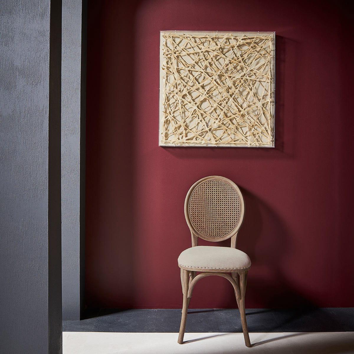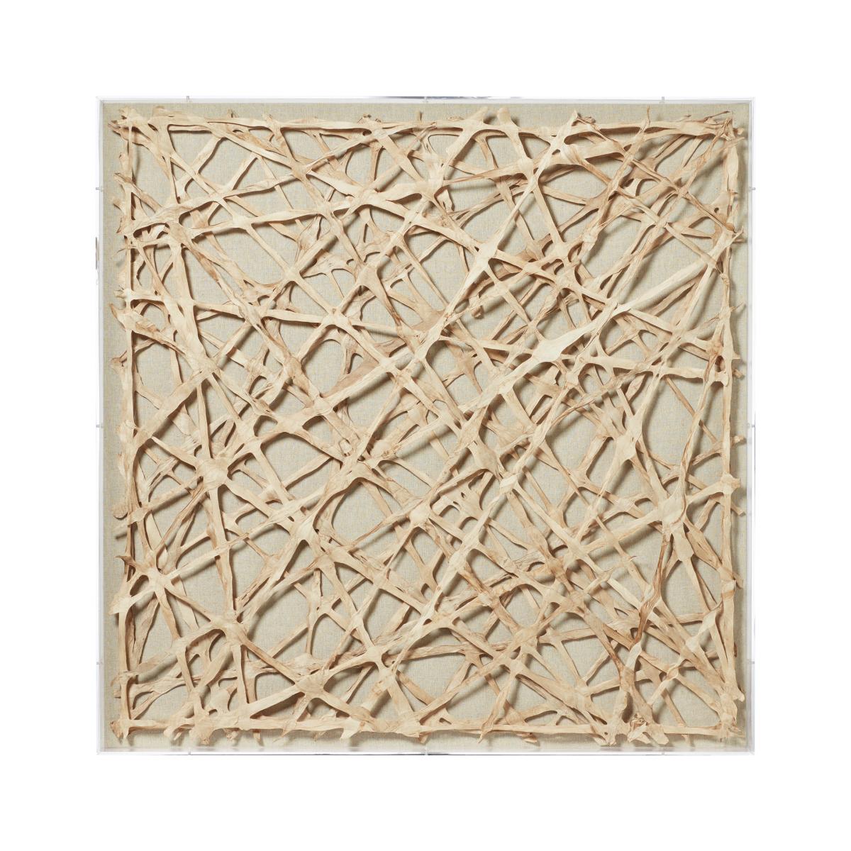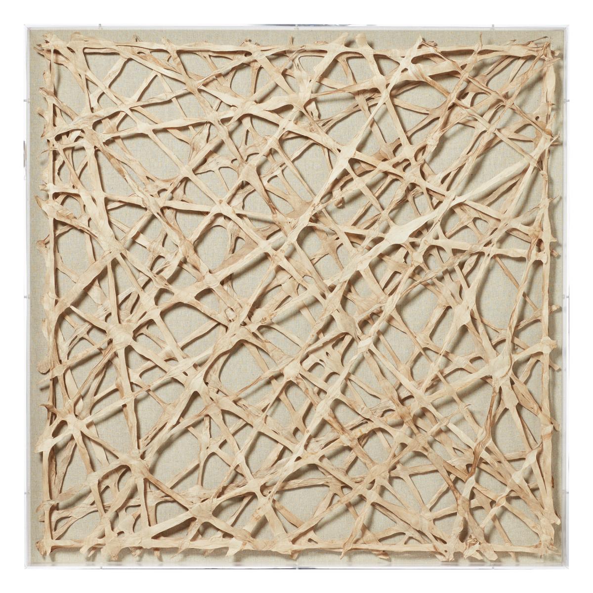 Abstract. Elegant. Striking. This collage has it all. We wanted to add more contemporary works to our range and this was exactly what we had in mind. The Makila's nest like structure is carefully constructed from thin strips of paper which are lacquered to ensure they hold their shape. Makila Wall Art - Multi