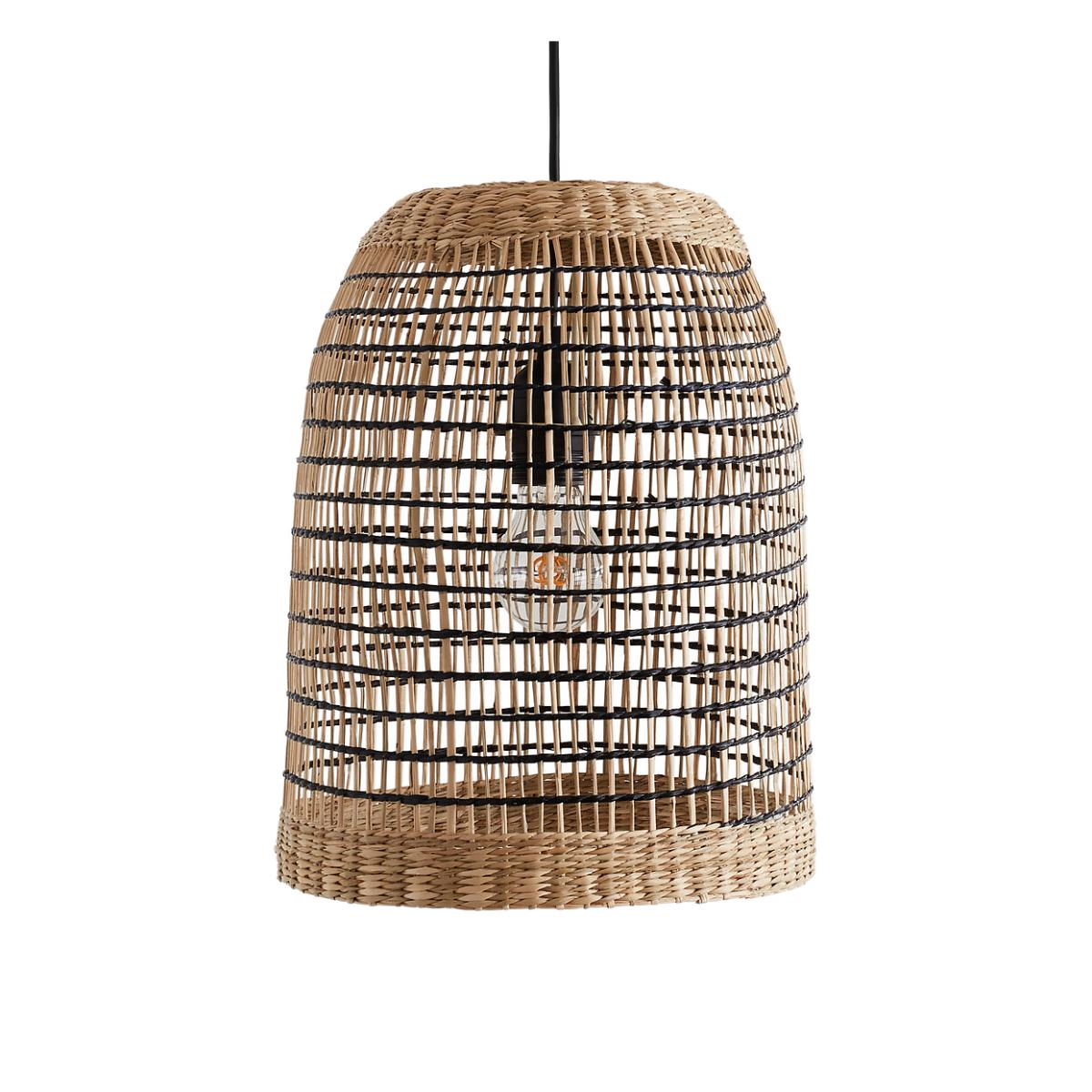 Made from woven herbarium, the Makita pendant light diffuses light in a very delicate way. Product Details • Woven grass • Iron structure covered with epoxy paint • Compatible with E27 bulb (not included) • This product is sold non-electrified. Baulind electrical cable is sold online. Quality Info • Artisanal craftsmanship. Dimensions • Diameter: 28cm • Height: 35cm. Dimensions and weight of parcel1 parcel • L30 x H37 x D30cm • 1kg