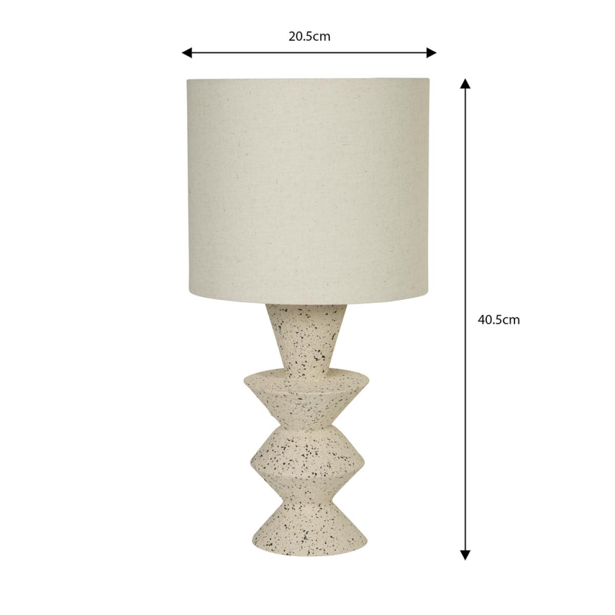 A ceramic table lamp featuring a striking geometric base with a stone effect finish. A natural shade completes the look for a touch of earthy elegance. Suitable for both modern and more traditional interiors, this lamp casts a warm, inviting glow in any room.