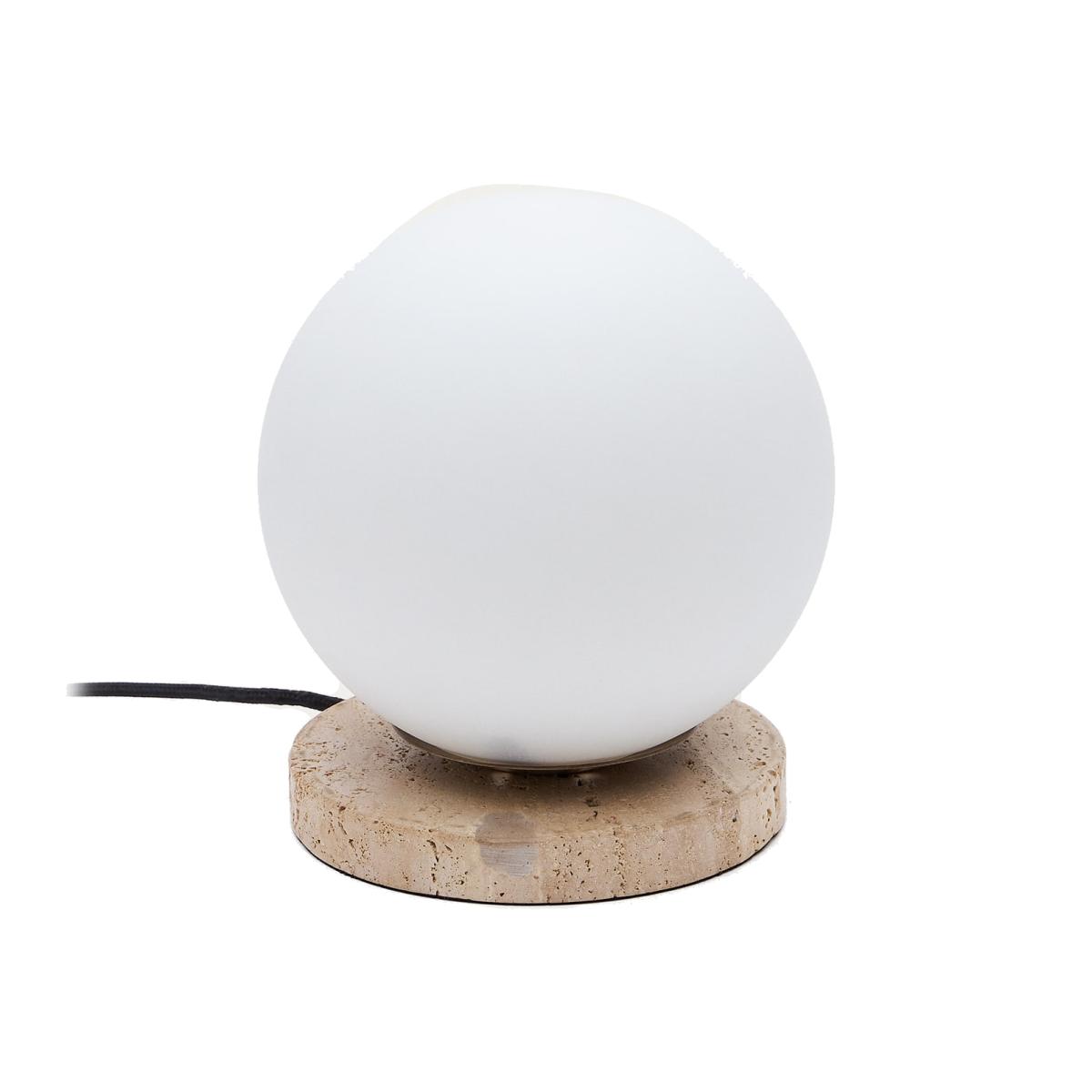 I love this lamp because of its clean, contemporary look combined with natural materials, making it versatile for a range of interiors. The glazed glass provides a soft, diffused light perfect for creating cosy atmospheres, while the travertine stone base adds texture and an element of understated luxury. It works particularly well in modern or mid-century inspired spaces, but can also ground eclectic settings with its neutral palette. Practical styling tips include placing it on a side table or console to highlight its sculptural qualities, pairing it with other textured or earthy accents, and using a warm bulb to enhance its inviting glow. The UK adapter makes it ideal for both residential and boutique commercial settings.