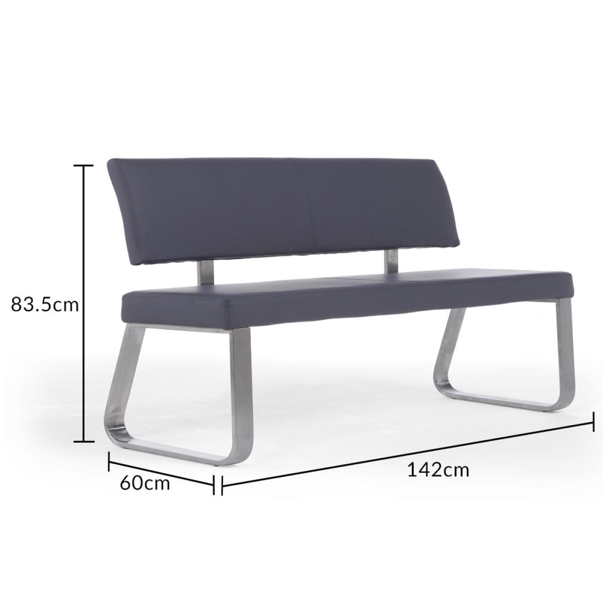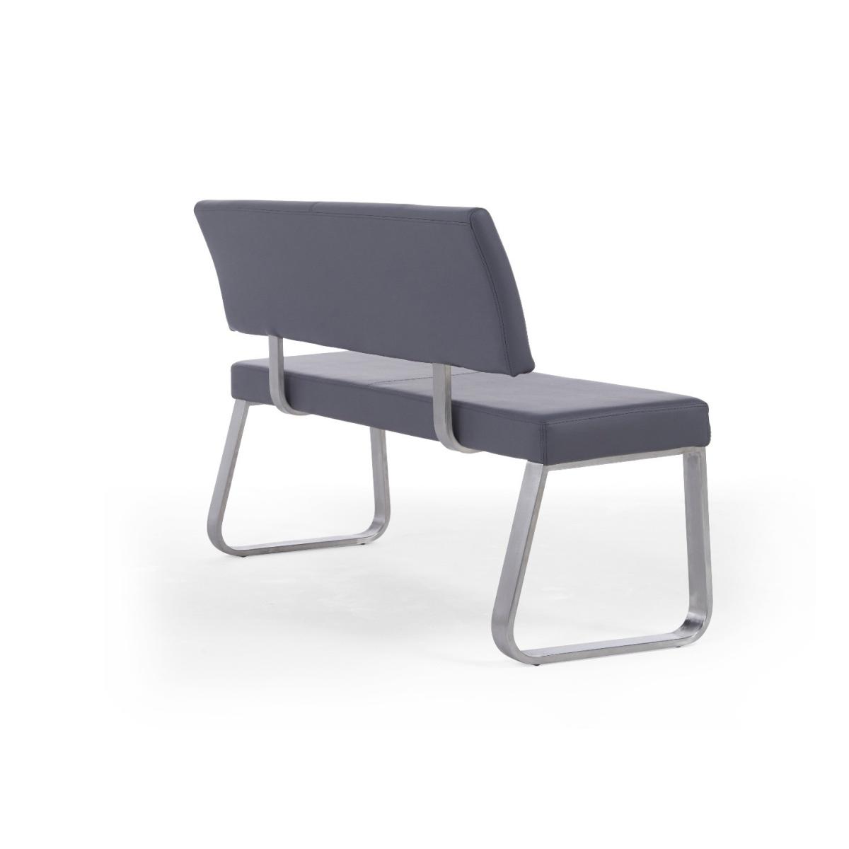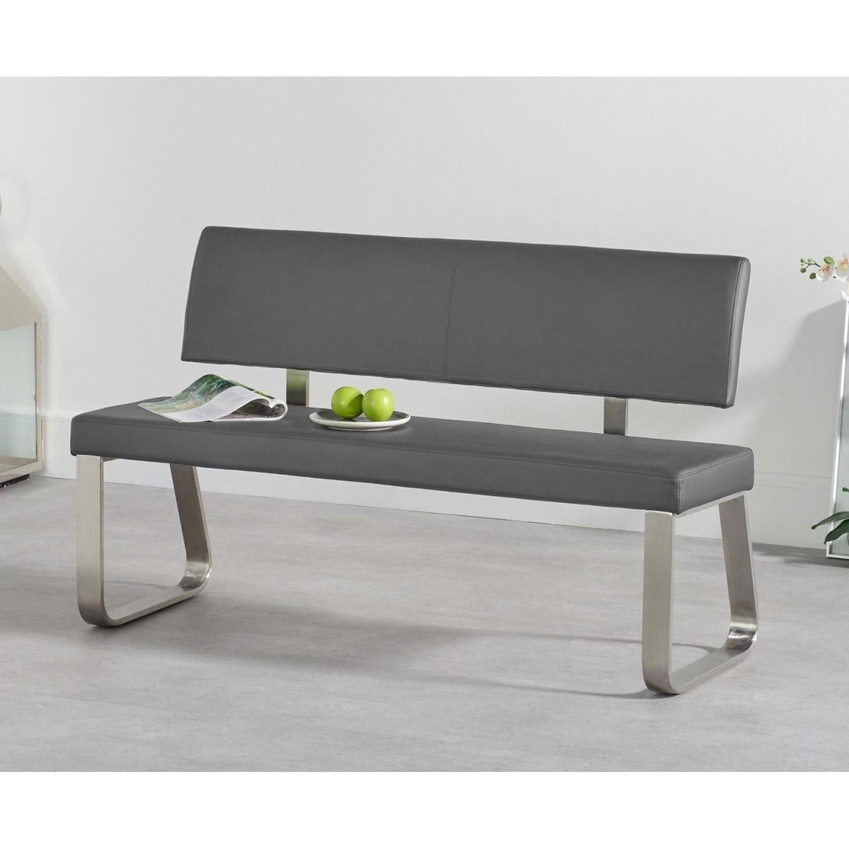 A fantastic alternative or addition to chairs, the Malaga Medium Grey Bench is sure to complement modern and contemporary tables and interiors. Able to seat up to 3 people, this comfortable and stylish bench features thick foam padding on the seat and back rest, which is covered by pliable faux leather upholstery in a flattering shade of grey. This is supported by brushed stainless steel legs, which join together in a sled style.