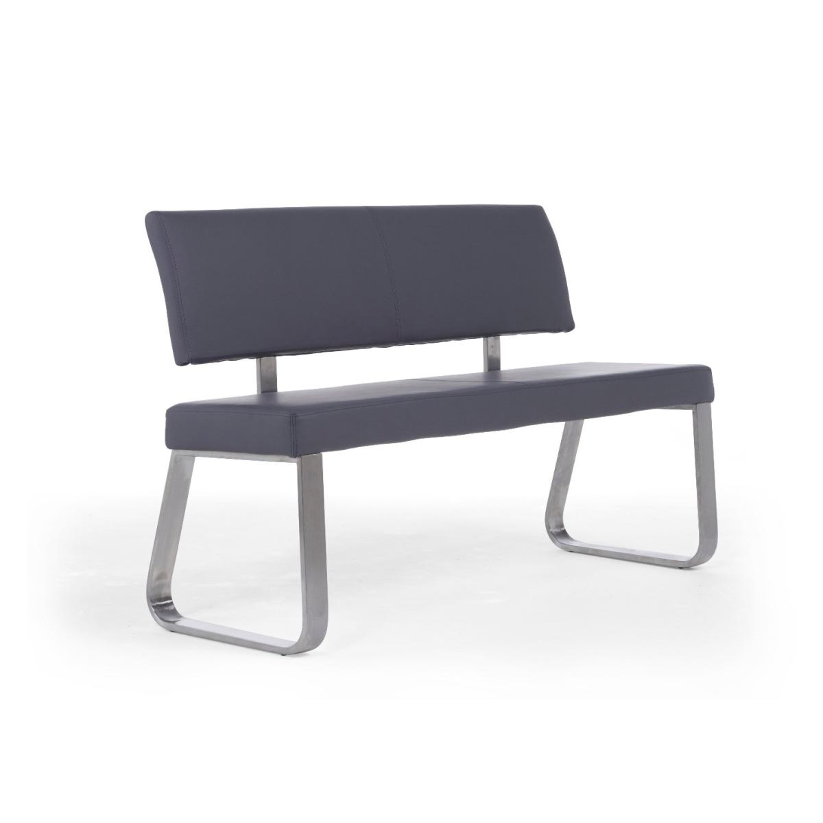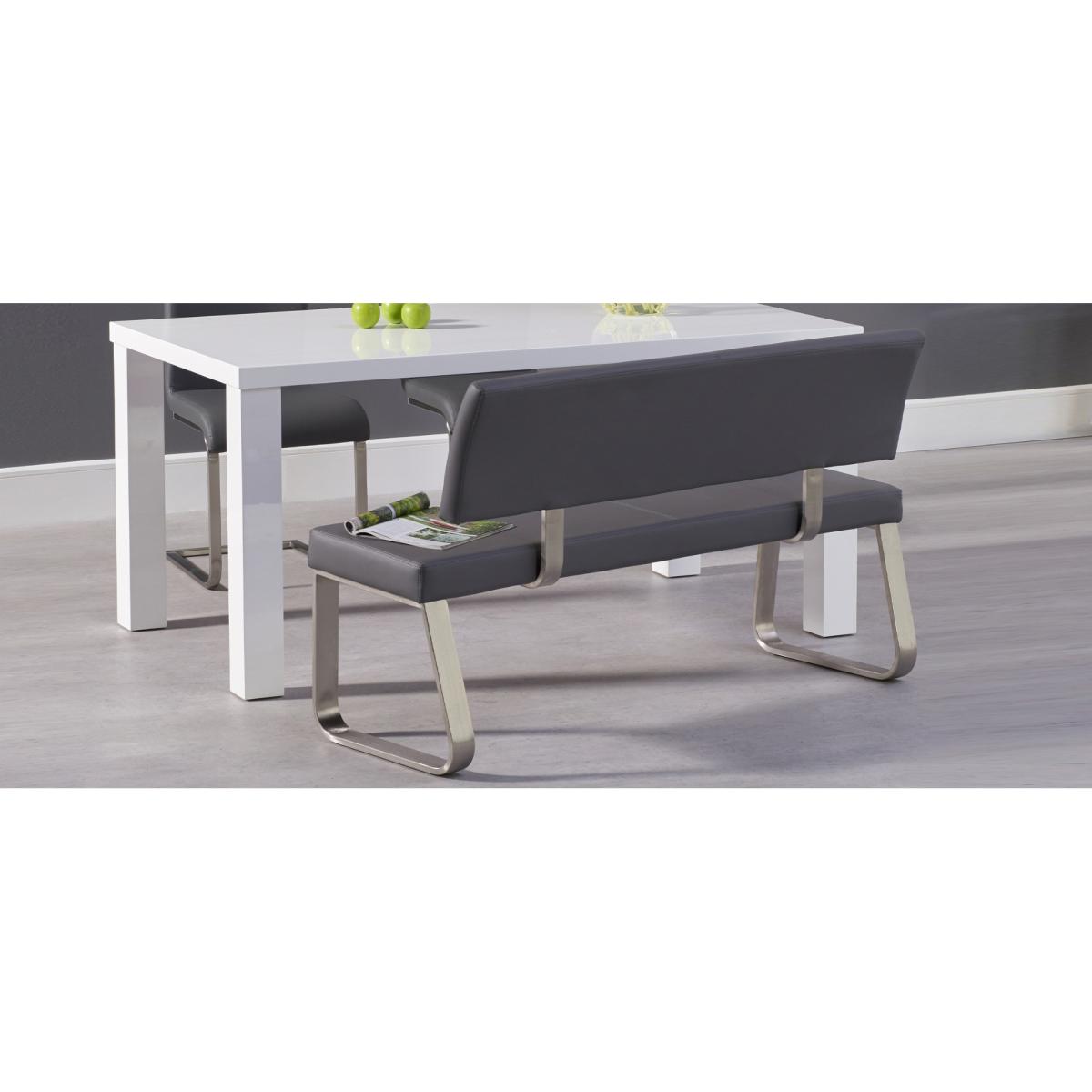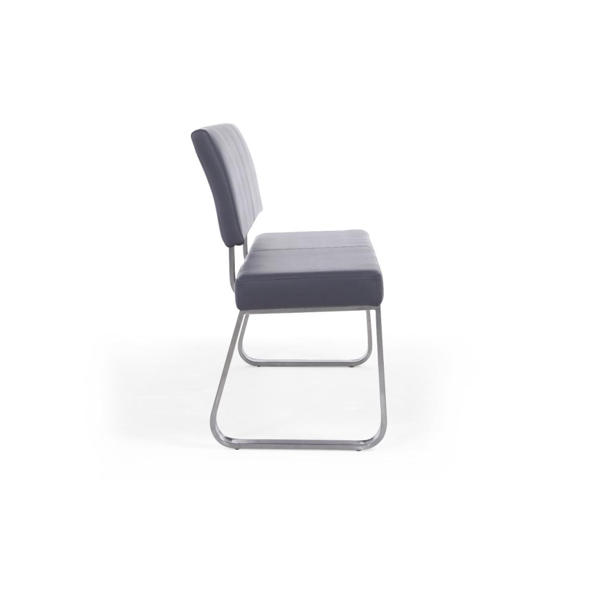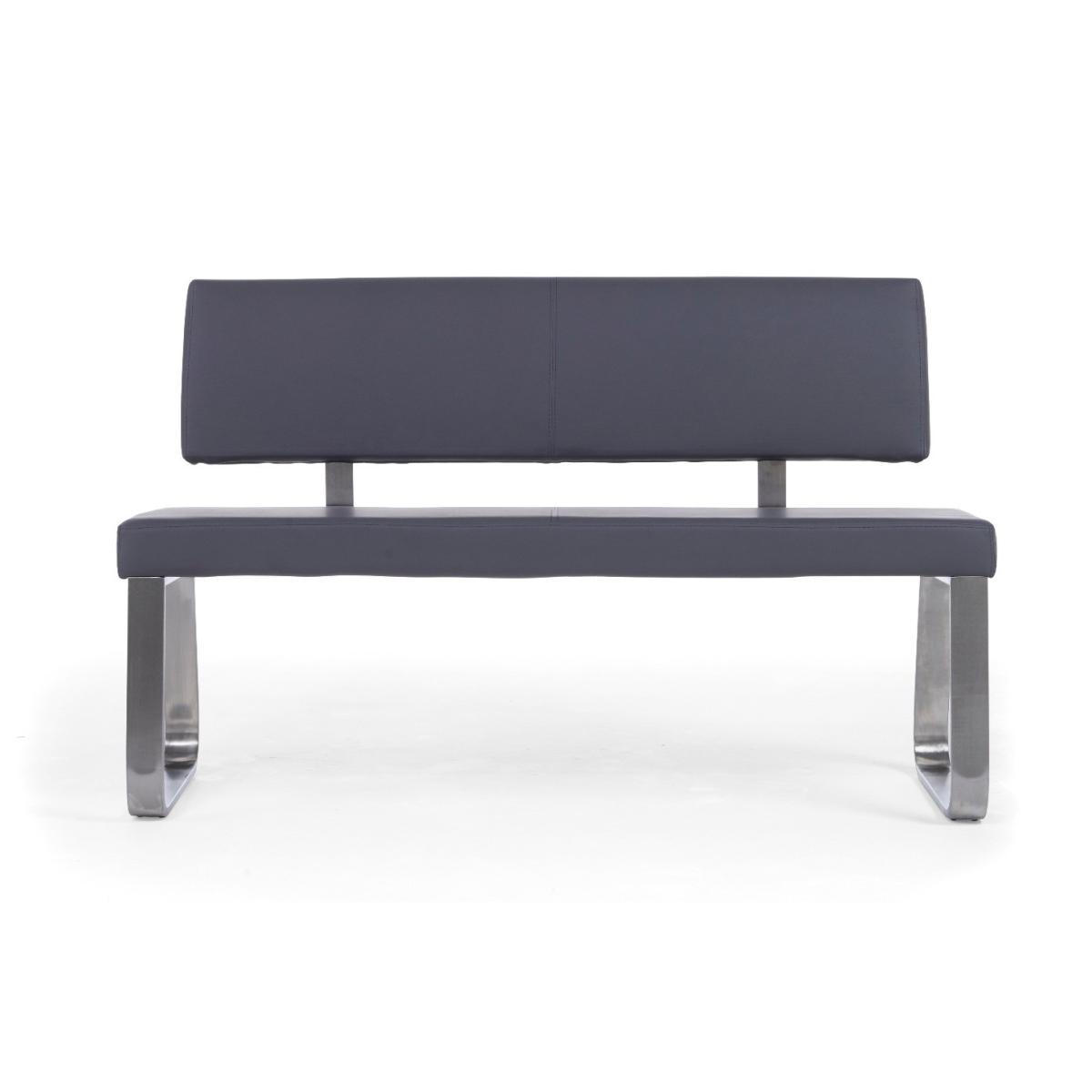 A fantastic alternative or addition to chairs, the Malaga Medium Grey Bench is sure to complement modern and contemporary tables and interiors. Able to seat up to 3 people, this comfortable and stylish bench features thick foam padding on the seat and back rest, which is covered by pliable faux leather upholstery in a flattering shade of grey. This is supported by brushed stainless steel legs, which join together in a sled style.