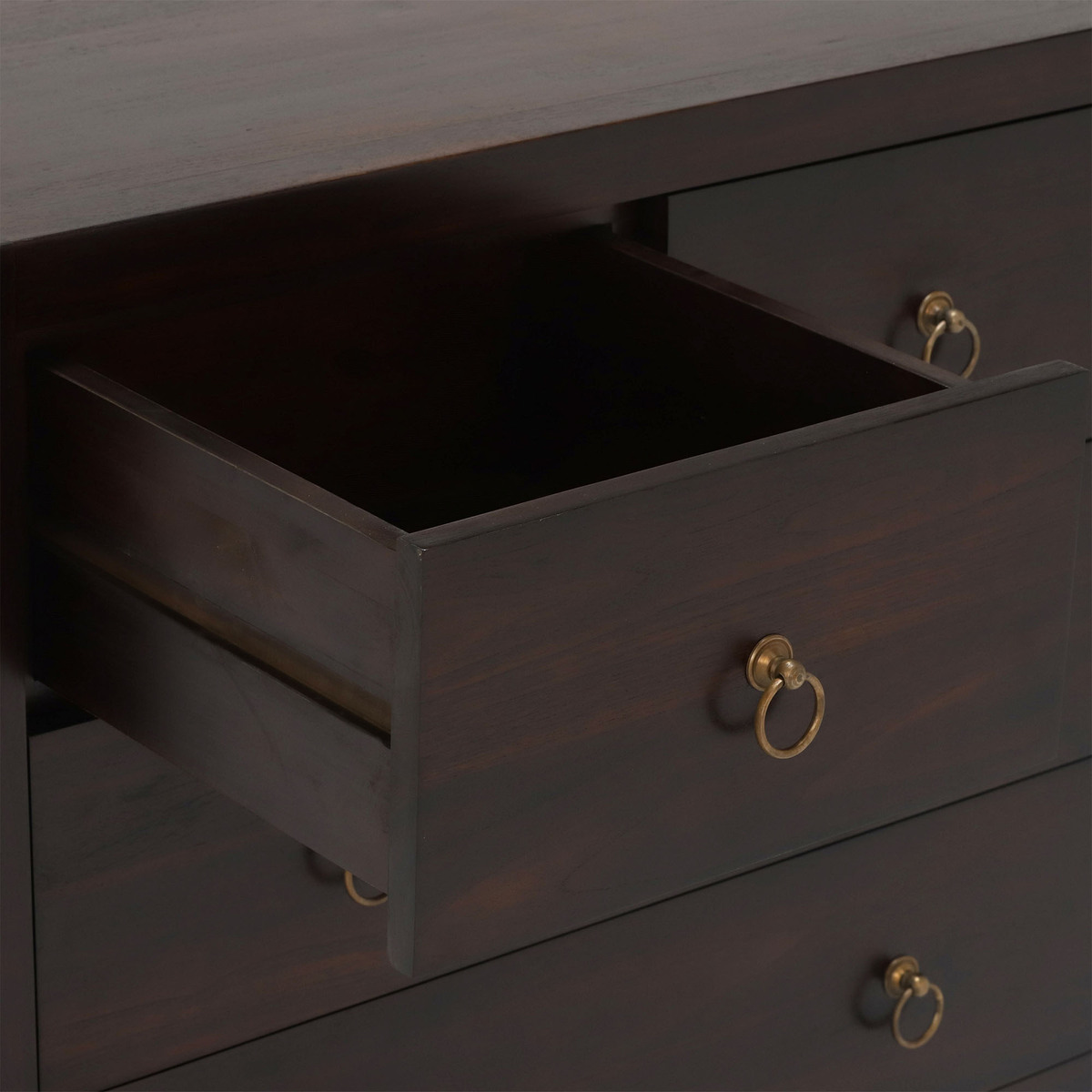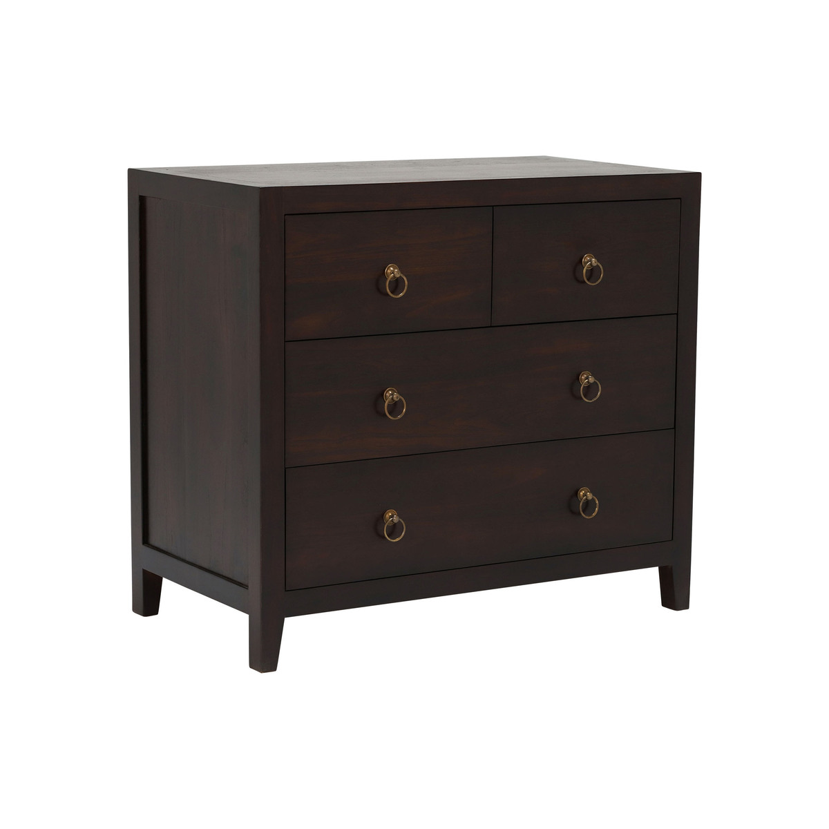Sleek lines compliment dark wood and metal ring pull handles to create a traditional look that will create an impact in your bedroom. The Malay 2 and 2 Drawer Chest would look stunning as a statement piece with various objects such as our Mottled Vase sat atop. The perfect piece for anyone looking for functional yet aesthetic storage, the Malay Chest is the perfect addition to any modern on traditional home.