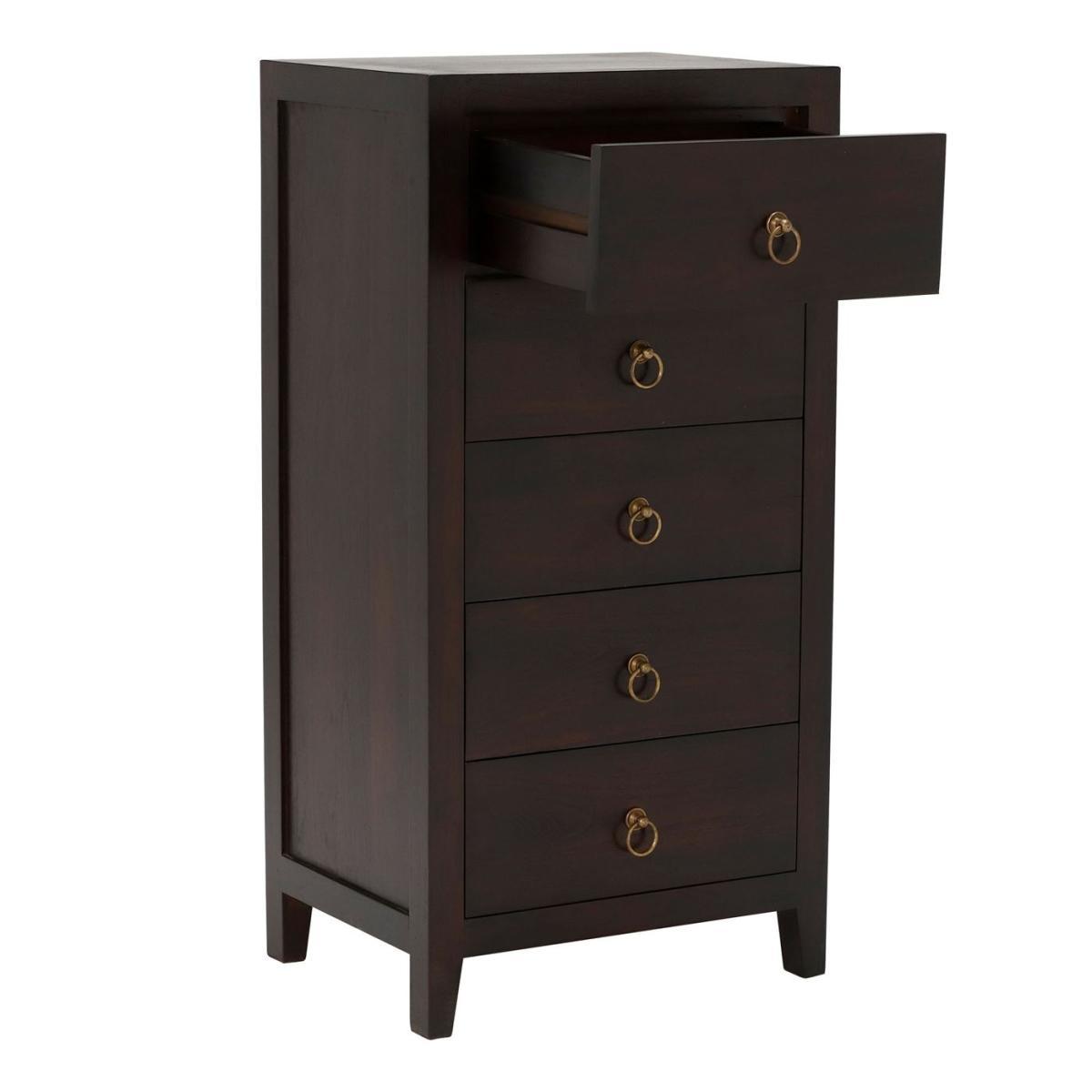 A beautiful and functional storage option for your home. The Malay 5 Drawer Tallboy has dark rich wood and a tall stature which will be an eye-catching feature in any room. This is a piece that will suit a modern or traditional interior setting and is a key piece of furniture for your home.