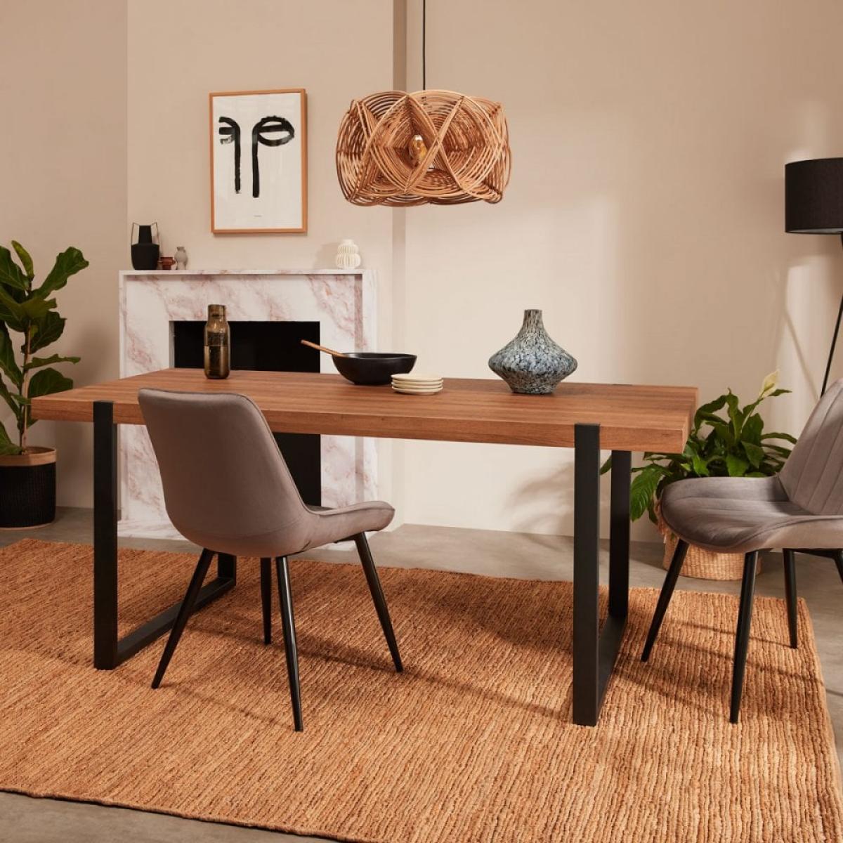 Add a touch of rustic sophistication and create the entertainment room of your dreams with our Malden dining table for 8 - a show-stopping Scandinavian piece that commands your attention. Featuring: an impressive rectangle-shaped table that has a grey veneer, wooden tabletop with a robust black metal base. The blend of these materials feels high-end yet homely - while creating the perfect complement to any aesthetic. Available in a natural veneer wood finish, the Malden makes an elegant dining room suite when teamed with our brushed woven or wooden dining chairs.