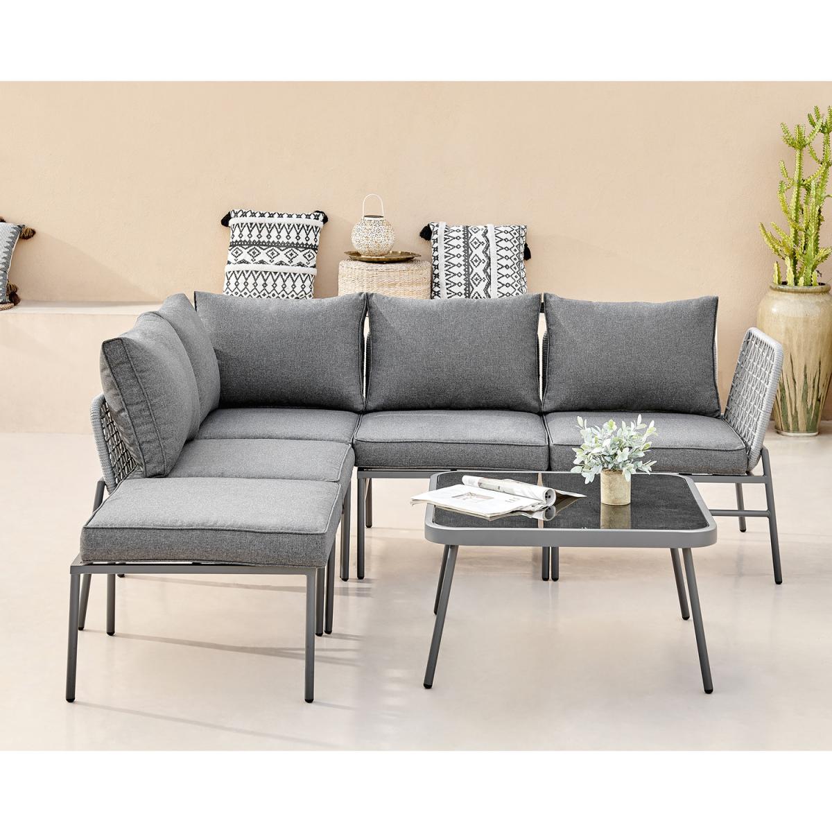 Our Maldives 4-5 Seater rattan and metal outdoor corner sofa will add some relaxed entertaining and relaxing space to your outdoor area, whether it's a patio, deck or even the conservatory. This is a gorgeous design that serves up boho laid back vibes with the woven PE rattan along with a splash of industrial Scandi flair through those powder-coated steel tapered legs. The matching square glass-topped coffee table creates a focal point and a place for drinks, snacks, or even an informal lunch. The seat cushions are 8cm thick and the back cushions are 6cm thick, so you can relax in comfort. The glass table top is 5mm tempered glass which will be durable but keep the set feeling light and airy. The steel frame and table are UV and weather resistant so shouldn't fade. The cushions are splash proof (so if any spills occur, pick up the cushion and give it a firm pat on the underside to encourage the droplets to roll off). However, the cushions should not be left outside or in damp conditions. Store them somewhere warm and dry. If they do get wet then allow them to fully dry in the sun or somewhere warm before you store them. This set includes a FREE water resistant cover but please note, this is not fully waterproof and you should still store your cushions somewhere dry during wet weather and through winter. We're excited to bring you our new outdoor range developed in-house by our product design team! We've overseen the process, from creating initial designs to hand-selecting the colours and fabrics. So, you can rest assured that you'll receive a Furniturebox bespoke design that won't compromise on style or comfort and won't break the bank! Total length of left-hand sofa section 210cm. Total length of right-hand sofa section 210cm. Sofa depth 70cm Sofa back height 69cm Sofa seat height 31cm