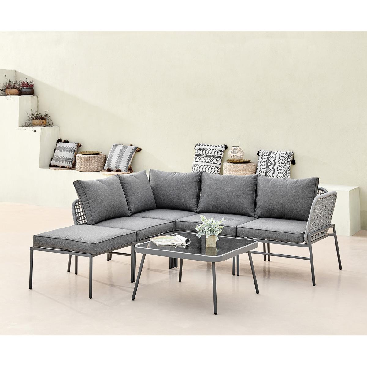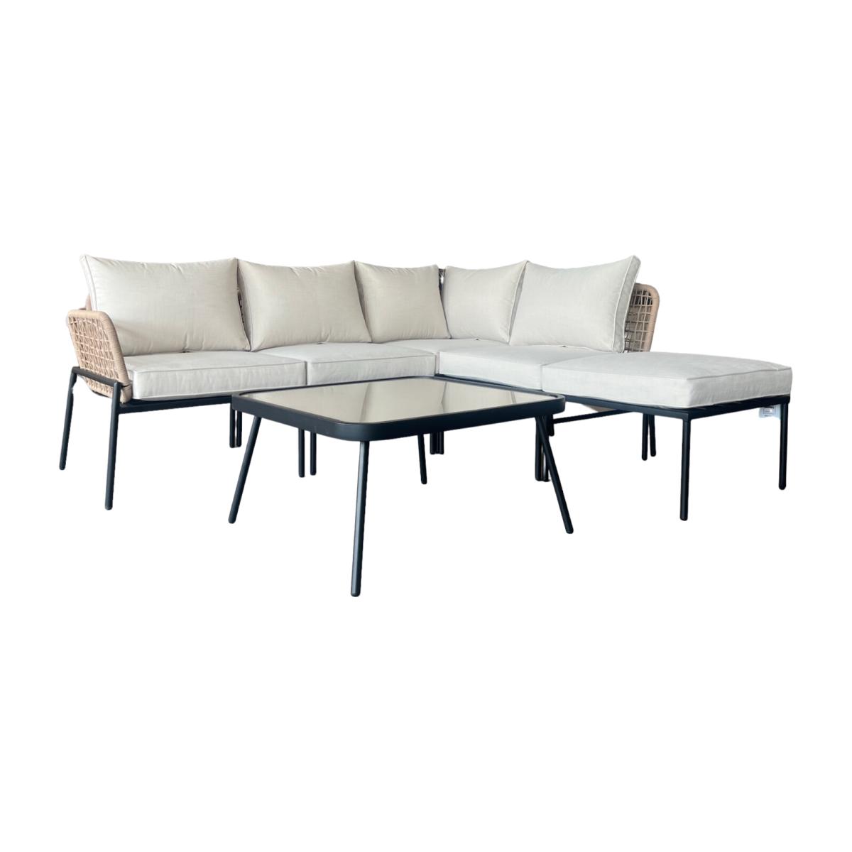 Our Maldives 4-5 Seater rattan and metal outdoor corner sofa will add some relaxed entertaining and relaxing space to your outdoor area, whether it's a patio, deck or even the conservatory. This is a gorgeous design that serves up boho laid back vibes with the woven PE rattan along with a splash of industrial Scandi flair through those powder-coated steel tapered legs. The matching square glass-topped coffee table creates a focal point and a place for drinks, snacks, or even an informal lunch. The seat cushions are 8cm thick and the back cushions are 6cm thick, so you can relax in comfort. The glass table top is 5mm tempered glass which will be durable but keep the set feeling light and airy. The steel frame and table are UV and weather resistant so shouldn't fade. The cushions are splash proof (so if any spills occur, pick up the cushion and give it a firm pat on the underside to encourage the droplets to roll off). However, the cushions should not be left outside or in damp conditions. Store them somewhere warm and dry. If they do get wet then allow them to fully dry in the sun or somewhere warm before you store them. This set includes a FREE water resistant cover but please note, this is not fully waterproof and you should still store your cushions somewhere dry during wet weather and through winter. We're excited to bring you our new outdoor range developed in-house by our product design team! We've overseen the process, from creating initial designs to hand-selecting the colours and fabrics. So, you can rest assured that you'll receive a Furniturebox bespoke design that won't compromise on style or comfort and won't break the bank! Total length of left-hand sofa section 210cm. Total length of right-hand sofa section 210cm. Sofa depth 70cm Sofa back height 69cm Sofa seat height 31cm