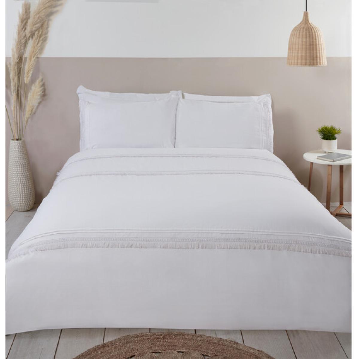 Catherine Lansfield Seersucker White Duvet Set - Single, Cotton, Striped - ["White"], ["Single","Double","King","Super King"]