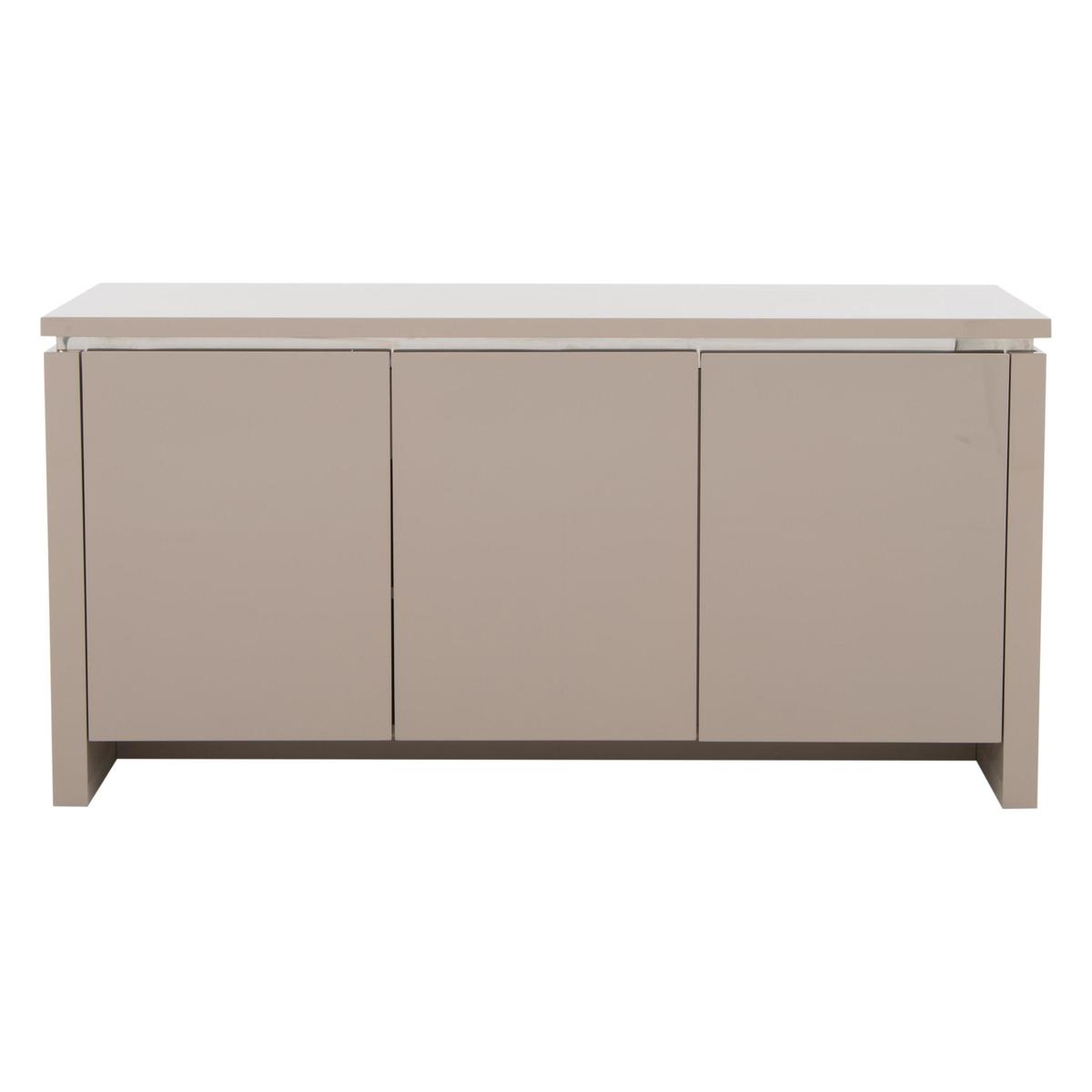 Modern, high gloss lacquered wood sideboard. In a choice of 4 colours – black, white, taupe or cream. 3 roomy shelved cupboards with soft close doors. Cupboards have no handles, for a sleek profile. Fitted drawers inside offer additional storage. Beautiful in the dining room, living room or hall. Complements the Malibu dining table