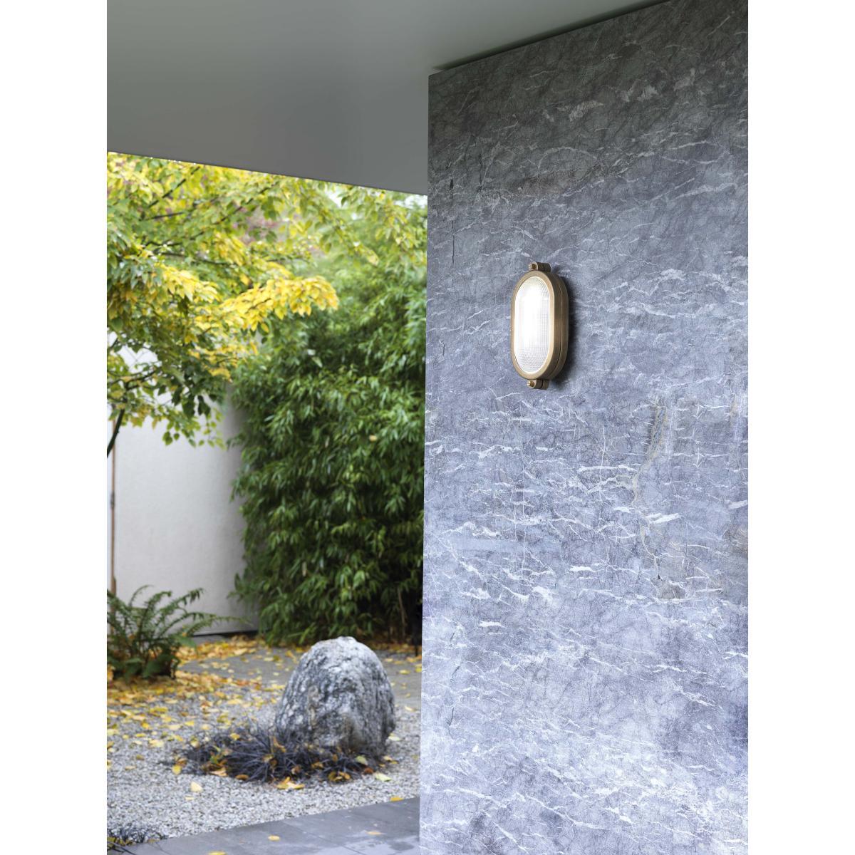 A 30s feel for this wall / ceiling light with its retro charm. Malibu’s silhouette is reminiscent of boat lights or the headlights of vintage cars. Malibu consists of a solid brass frame which holds a convex optical glass lens for high-quality lighting. This textured glass is covered with raised prisms which improve the optical properties of the glass (refraction, dispersion, efficiency etc). The lighting is optimal: diffused, functional and not dazzling. The Malibu wall / ceiling light adds character to your exteriors and effectively illuminates an entrance, porch or terrace. It can also be used in a bathroom (zone 1, 2 and 3). This solid brass wall light is designed to withstand all the vagaries of the weather: it’s suitable for the most exposed areas and benefits from exceptional durability. The brass will acquire a natural patina over time. The English brand Astro Lighting is popular among the hotel industry for the quality and performance of its lights, which fit just as well into both public and private environments. All Astro Lighting lamps are made in the UK. Created to provide maximum lifespan, each Astro product is manufactured with rigour and total attention, every step of the way, to ensure it will stand the test of time. Simplicity is at the heart of the design: the products are refined in order to better reveal their fundamental values.