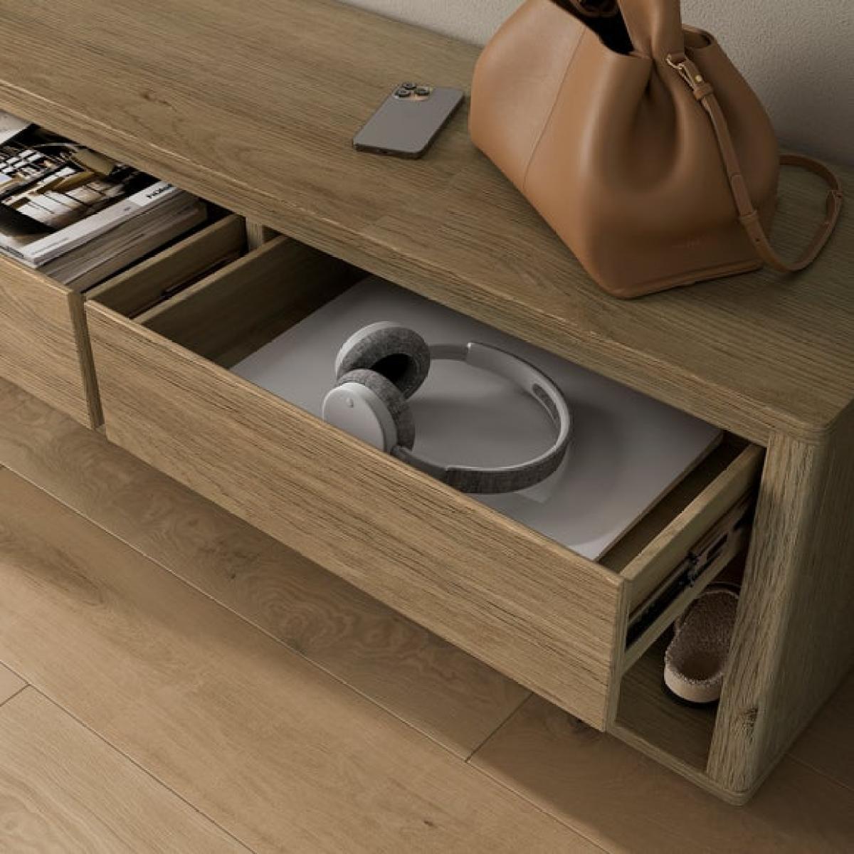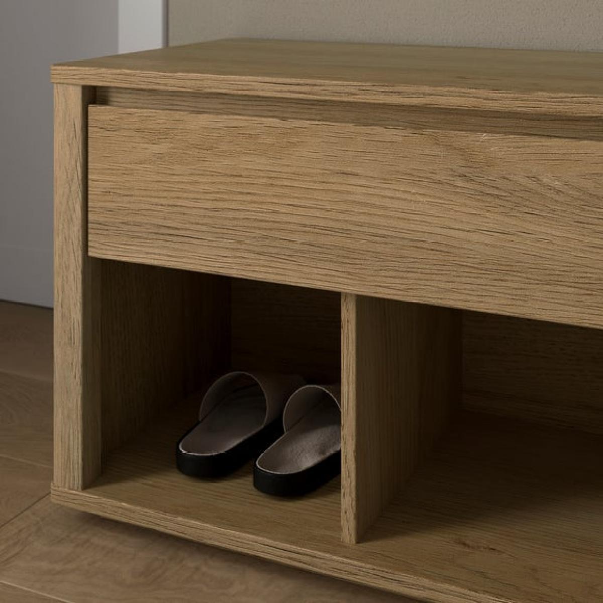 * Light wood finish * Smooth metal drawer runners * Easy to assemble This bench is a multi functional piece designed to bring both style and practicality to your hallway or entrance area. This bench features a light oak effect finish that complements modern interiors, while the open storage beneath is perfect for shoes, baskets, or everyday essentials. Whether used as a place to sit while putting on shoes or as a decorative feature, it’s a smart and space-saving addition to your home.