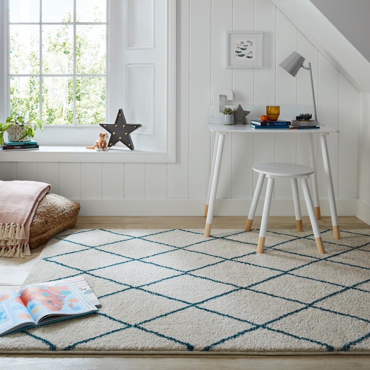 Bring a fashion statement to your children's spaces with our Malika Berber Rug. With a brightly coloured diamond design, this will make any kids bedroom right on trend. Being 100% polypropylene means it is hard-wearing and easy to care for, with a shaggy texture providing softness and comfort under little feet. Care Instructions:.