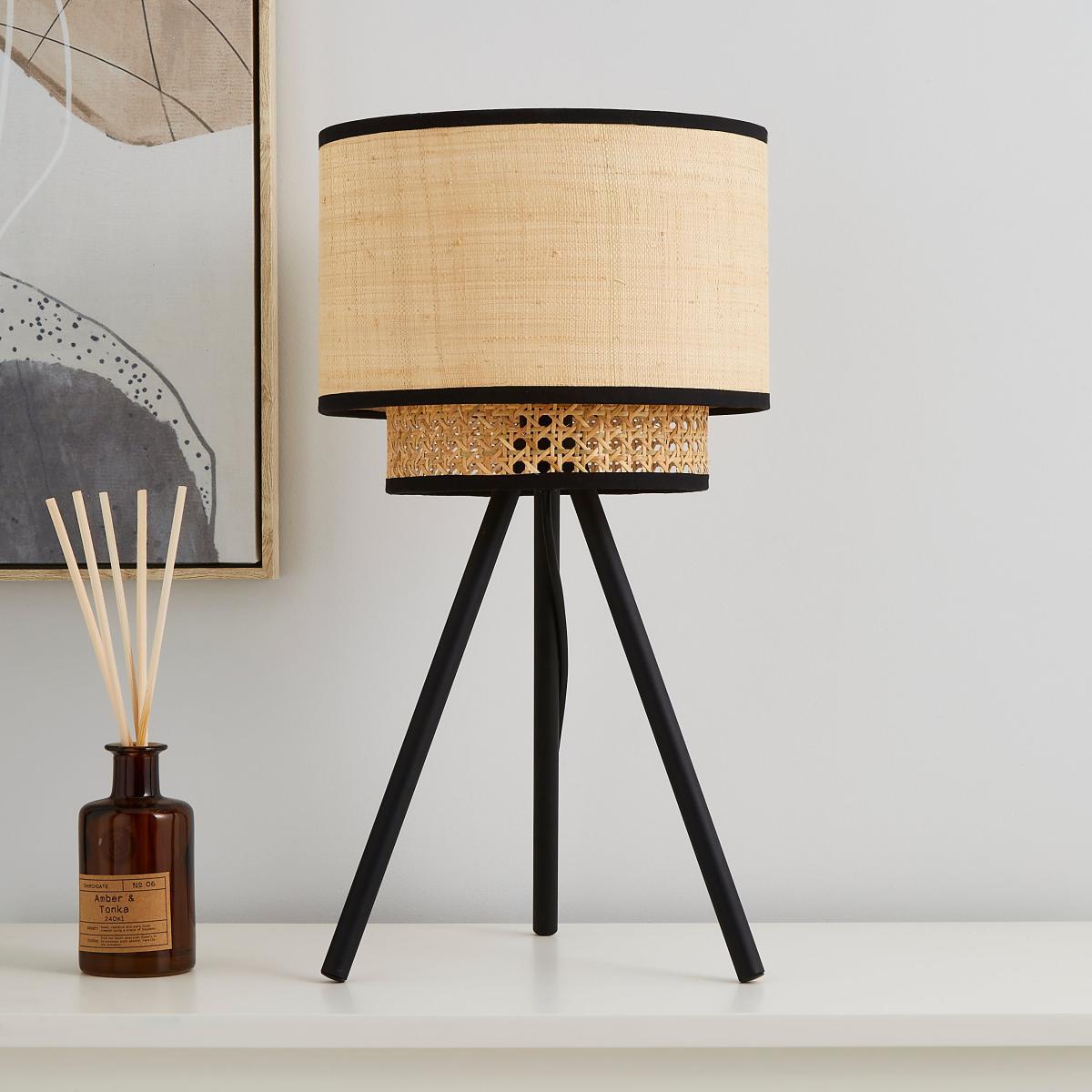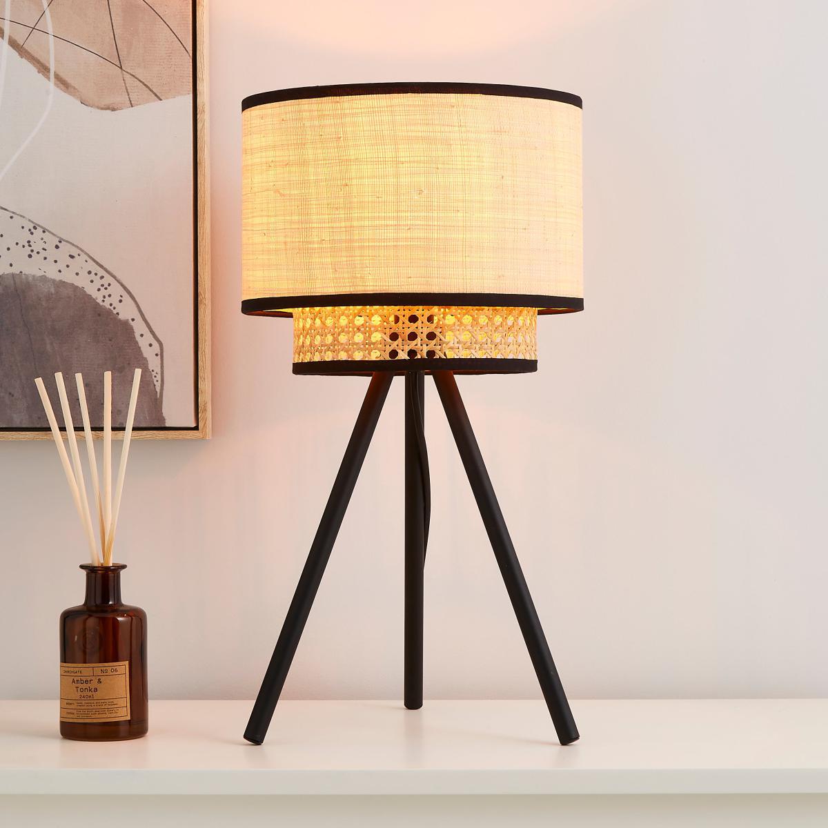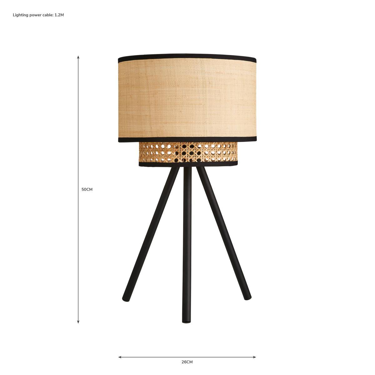 Malika Cane 2 Tier Tripod Table Lamp Black