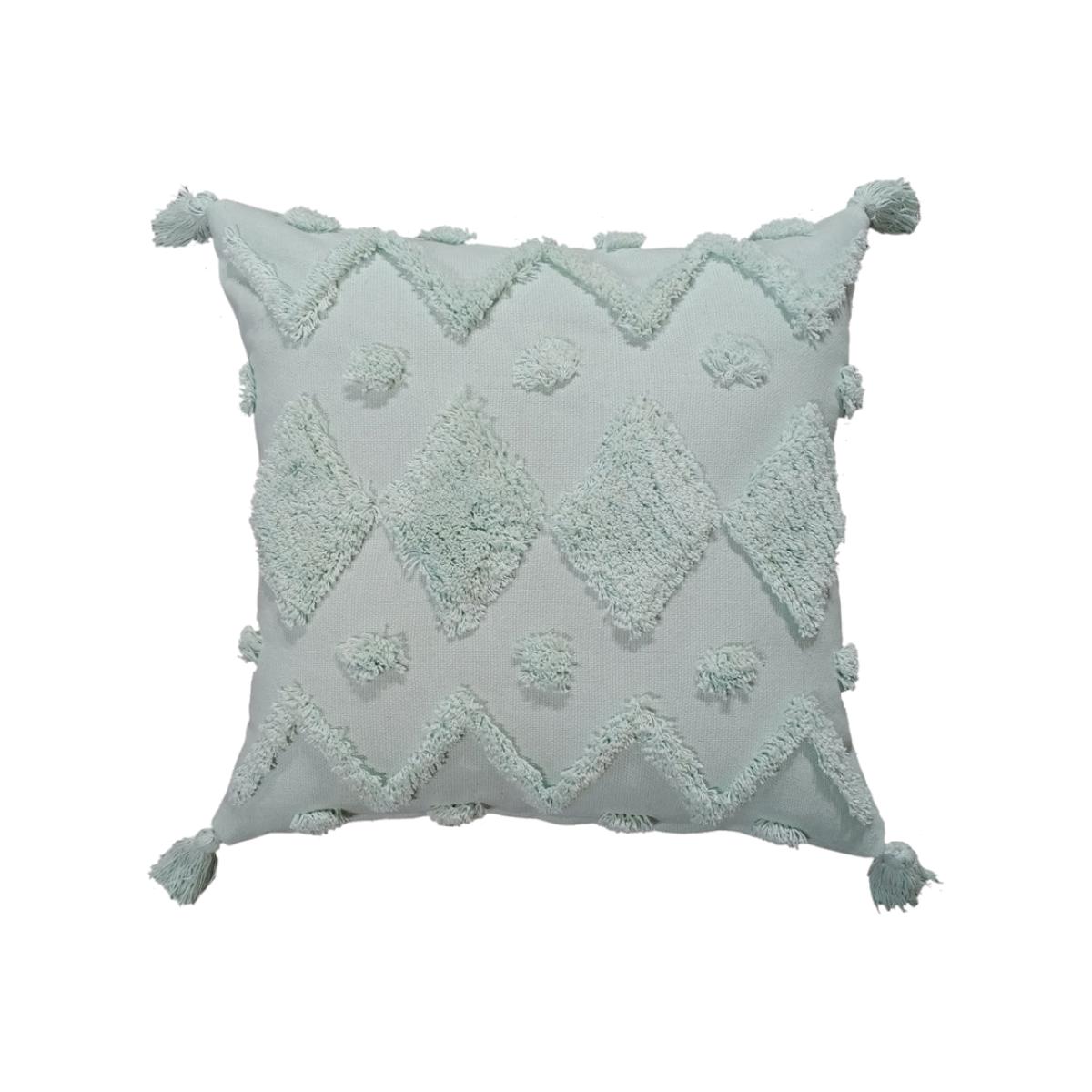 The Malini Jaipur woven cushion in mint has a raised pattern that will add an elegant touch to any living space. Made from 100 per cent cotton, it is extremely comfortable and perfect for snuggling up on the sofa. Measuring 45cm x 45cm, this beautifully crafted cushion is incredibly versatile. Whether placed on a sofa for extra comfort or used as a decorative piece on an armchair or bed, the Malini Jaipur woven cushion in mint is easily paired with your existing furniture. With its subtle raised pattern and soft mint tones, this cushion is guaranteed to be a favourite home accessory.