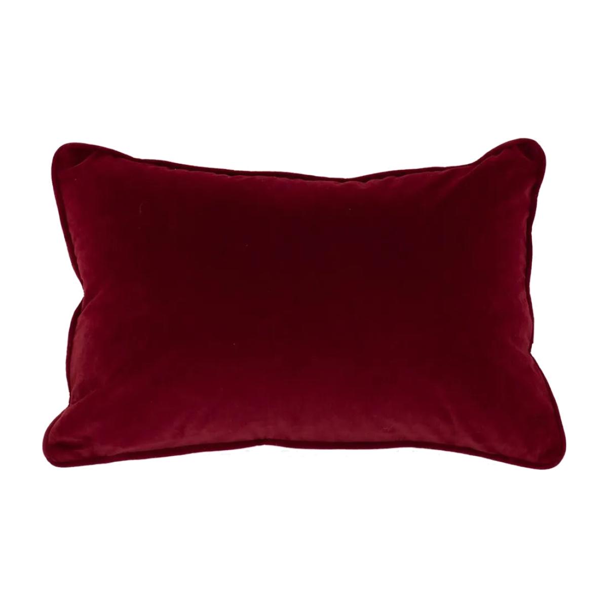 I love this cushion for adding a bold pop of colour, especially in more neutral or monochromatic interiors. The bloodred shade makes it an excellent accent piece on a grey or beige sofa, bringing warmth and visual interest. It works well in both traditional and contemporary settings, particularly when paired with other rich textures or metallic accents. For practical styling, layer it with other cushions in varying sizes and textures to create a cosy yet polished look. Additionally, its rectangular shape is perfect for supporting your lower back while seated, making it as functional as it is stylish.