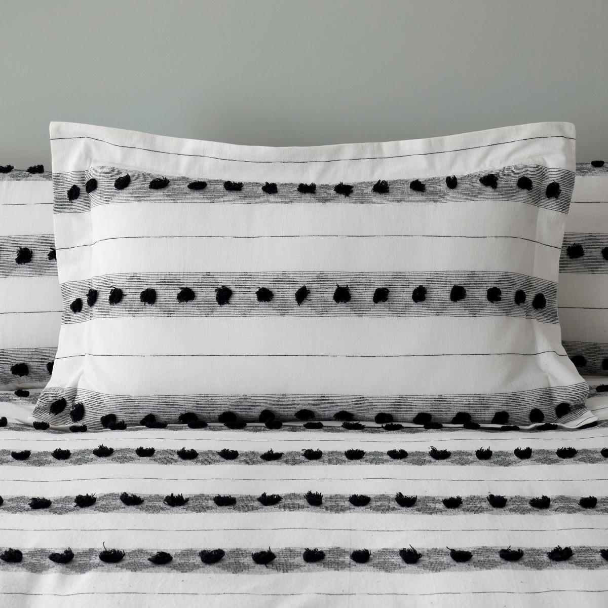 Malini Monochrome Tufted 100% Cotton Oxford Pillowcase Black and white