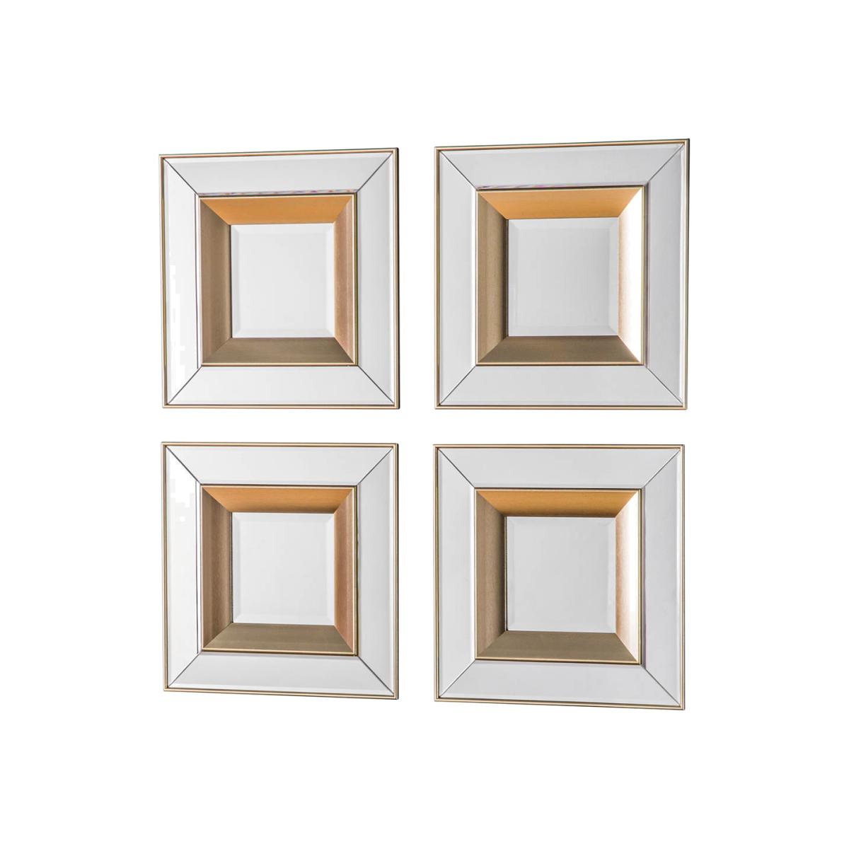 Stylish and sophisticated wall mirrors featuring bevelled mirror pieces and a gold finish inset and surround for a double frame effect. Matching leaner mirror and large wall mirror also available. Shape: Square. Material: Glass, PS. Colour/Finish: Gold. Mount Type: Scatter Set.