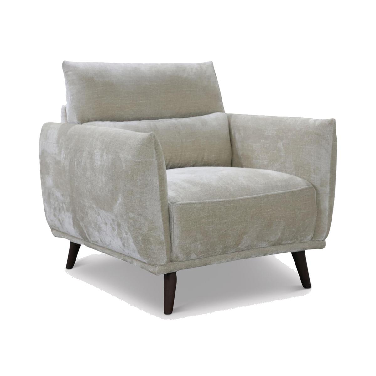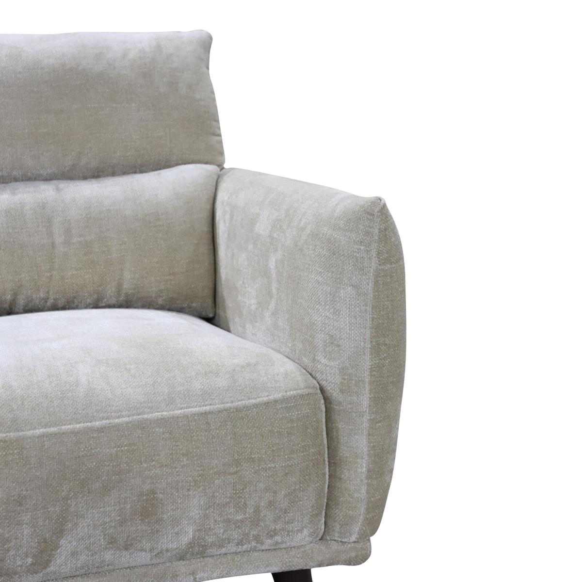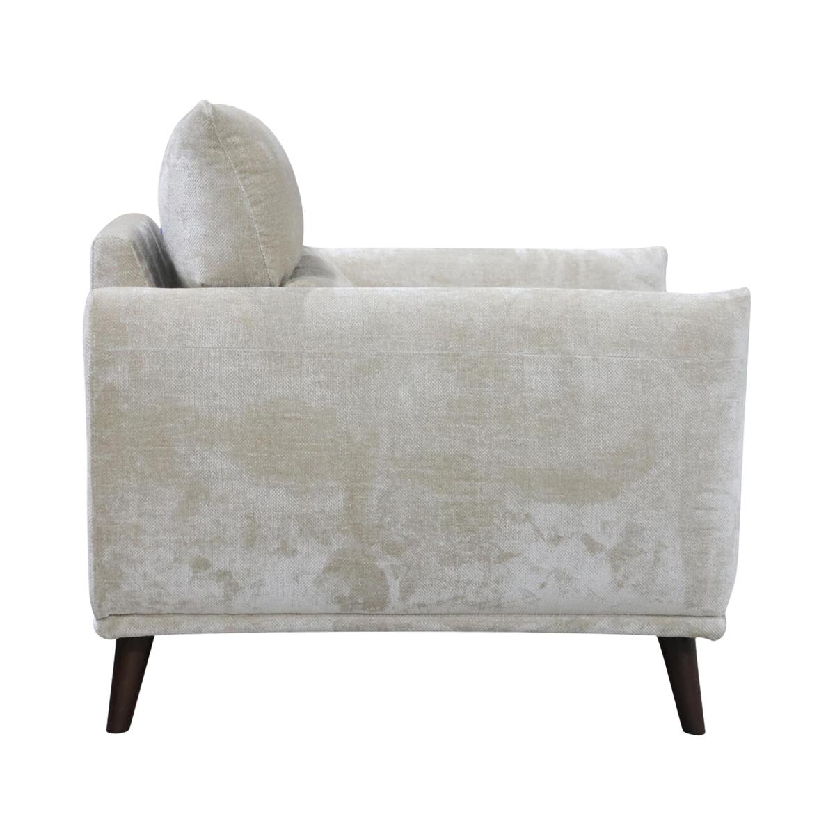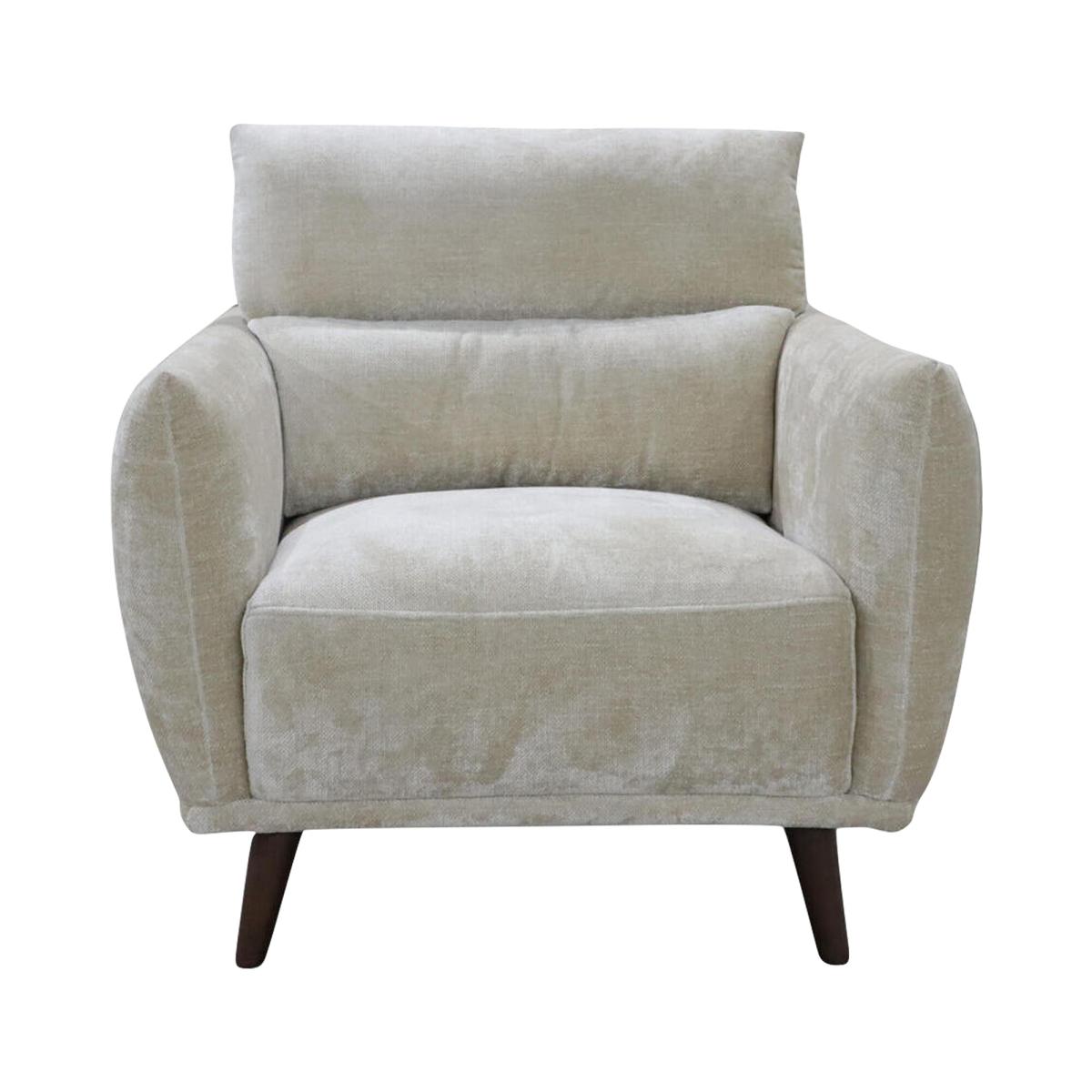 This elegant fabric armchair blends comfort and style effortlessly. Its soft, neutral upholstery invites relaxation, while the sleek walnut wooden legs add a touch of sophistication. With a supportive backrest and plush seat cushion, it's perfect for lounging, reading, or enjoying a quiet moment of relaxation. Compact yet inviting, it fits beautifully in living rooms, bedrooms, or apartments, offering a timeless design that complements a variety of interiors while keeping comfort front and centre.