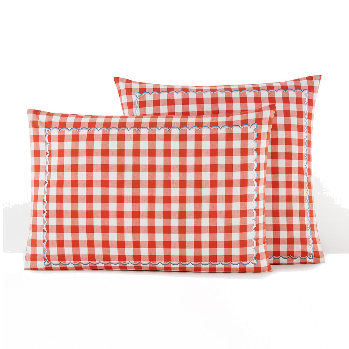 Small gingham checks in dyed woven cotton from the Veldi range with a scalloped embroidered frame create the Mallory pillowcase. Created by La Redoute Interiors. Cotton is part of our daily lives. We love it for its suppleness and softness. Easy Care, it is ideal for the beds of young and old alike!Product Details • 100% cotton • 144 thread count • Dyed woven cotton • Embroidery on the front • Orange gingham pattern • Bourdon edging. Match this item with the rest of the bedding in the range for a stylish bedroom. And you can mix and match it with different colours and styles from our other bedding ranges when you want to change things up and create your own unique look. Care Advice • Machine washable at 60°C • By washing your laundry at 40°C instead of 60°C, you limit energy consumption. Sizes • 50 x 70cm: Rectangular pillowcase • 63 x 63cm: Square pillowcase • OEKO-TEX® Standard 100. Standard 100 certification by OEKO-TEX® tests textile products for harmful substances via an independent, international label.