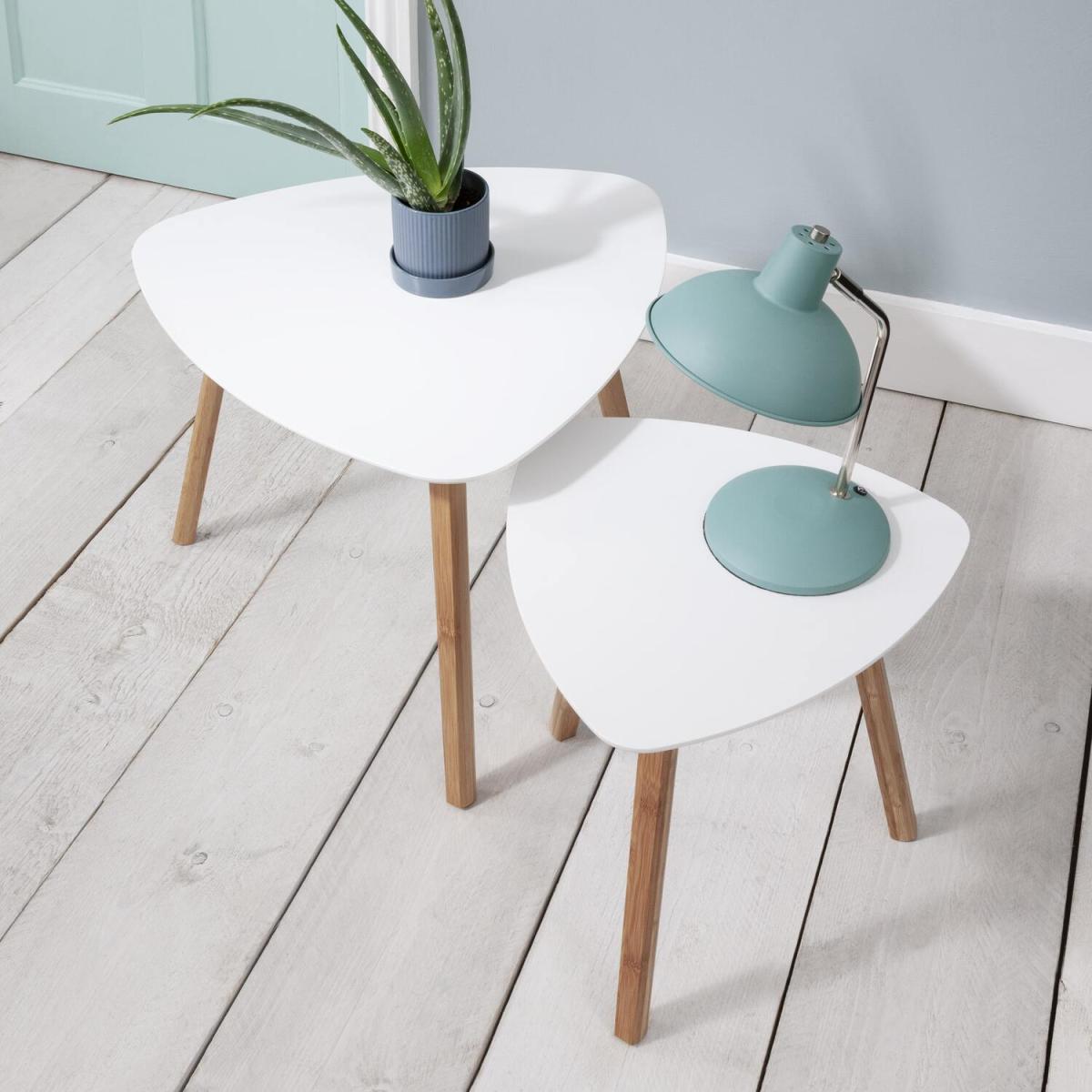 I really like these tables for their simple, clean lines and versatile appeal. They work particularly well in contemporary or Scandinavian-inspired interiors thanks to their minimalist design and neutral white finish. The nested feature is practical, allowing you to save space or create flexible surface options-perfect for side tables, plant stands, or even uncovered as a small coffee setup. Practical styling tips include grouping them with textured accessories or colourful accents to add visual interest, or using one as a base for a statement lamp or decorative vase to keep the look fresh and functional. They’re an understated addition that can easily adapt to various decor styles while keeping your space feeling modern and uncluttered.