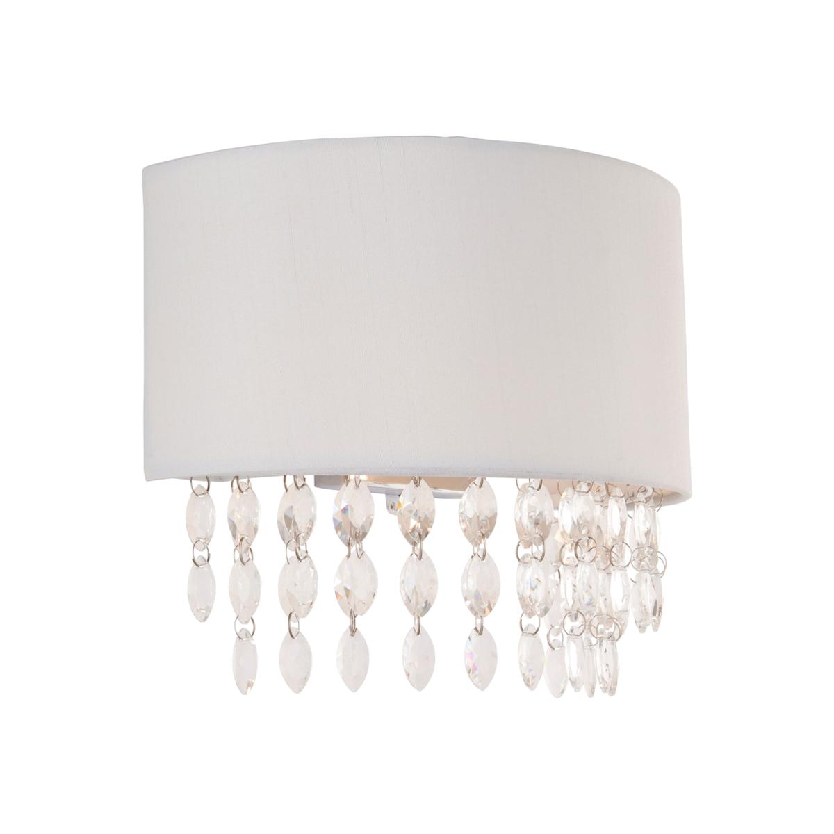 Malmesbury Shade Wall Lamp Silver Grey Fabric Glass Chrome Plate - Chrome