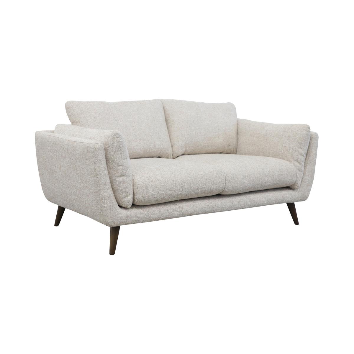 Brighten your living space with our off-white fabric 2-seater sofa. Featuring sturdy espresso wooden legs, this sofa combines timeless style with lasting durability. Its soft, inviting fabric offers comfort for relaxing, reading, or entertaining guests, while the neutral tone effortlessly complements any decor. Compact yet elegant, it’s perfect for adding a cosy, sophisticated touch to your living room. Enjoy a stylish centerpiece that brings warmth and charm to your home.