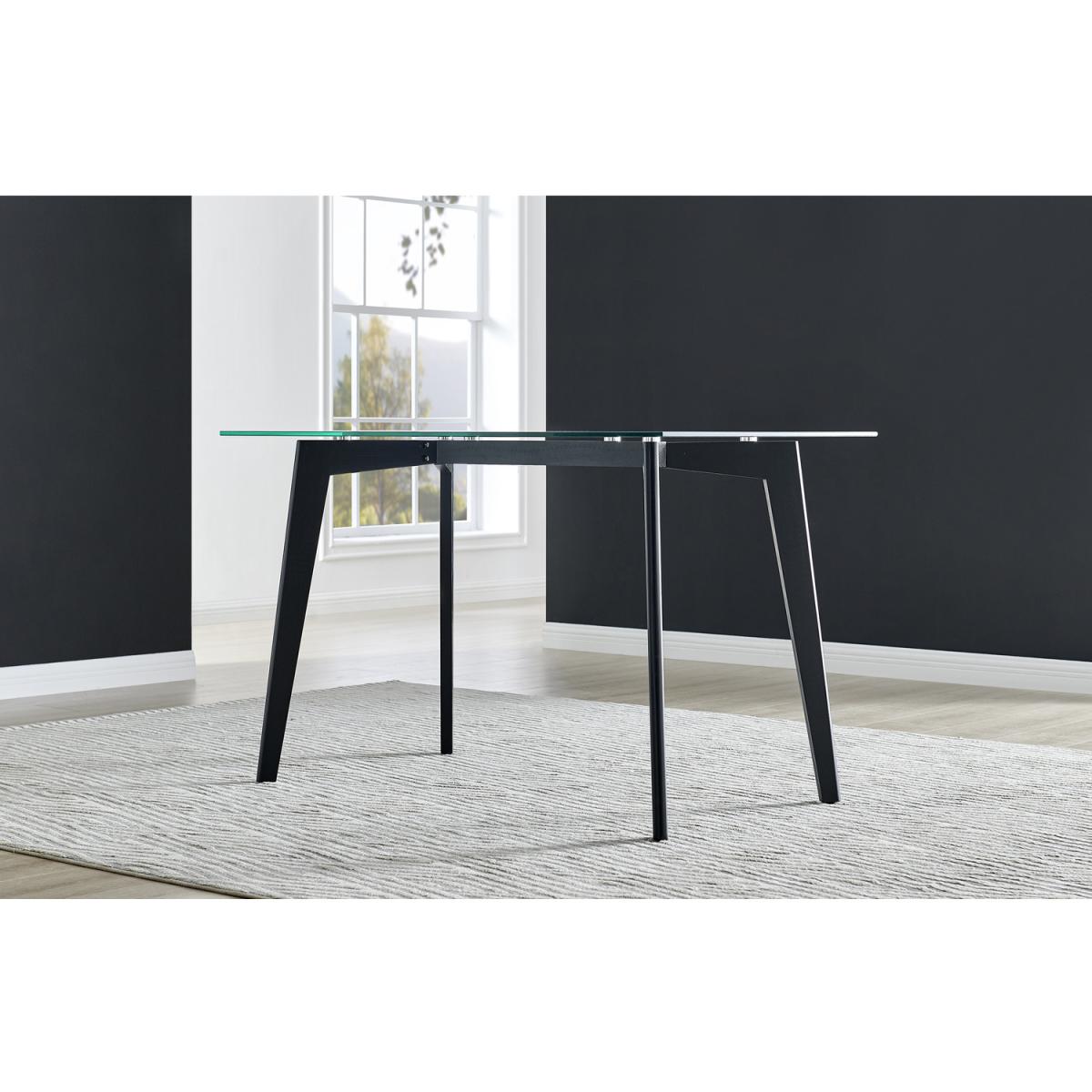 Our Malmo Scandi-inspired rectangular glass dining table features simple and effortless clear glass and black wooden legs, perfect for modern homes. This dinner table has a 1cm thick tempered glass tabletop sat on four angled black beech wood legs with rounded edges. It will comfortably seat 4 so perfect for family dinners or for entertaining guests. This design is all about keeping things unfussy and light with that minimalist Industrial look and laid-back Scandinavian touch. This beautifully designed dining table will set the scene for a stylish and contemporary dining room. Want to complete the look? Shop the rest of the Malmo range for on-trend furniture!