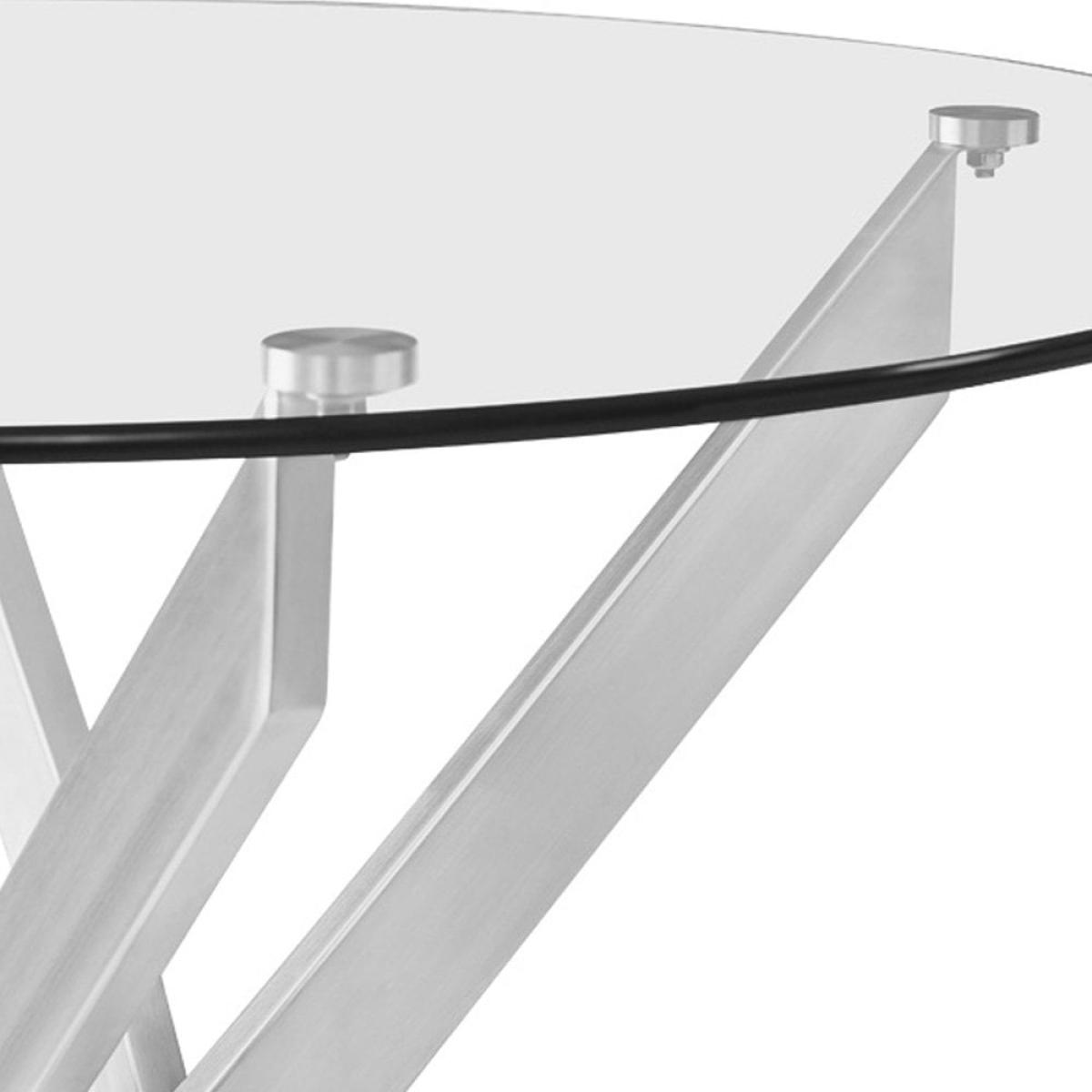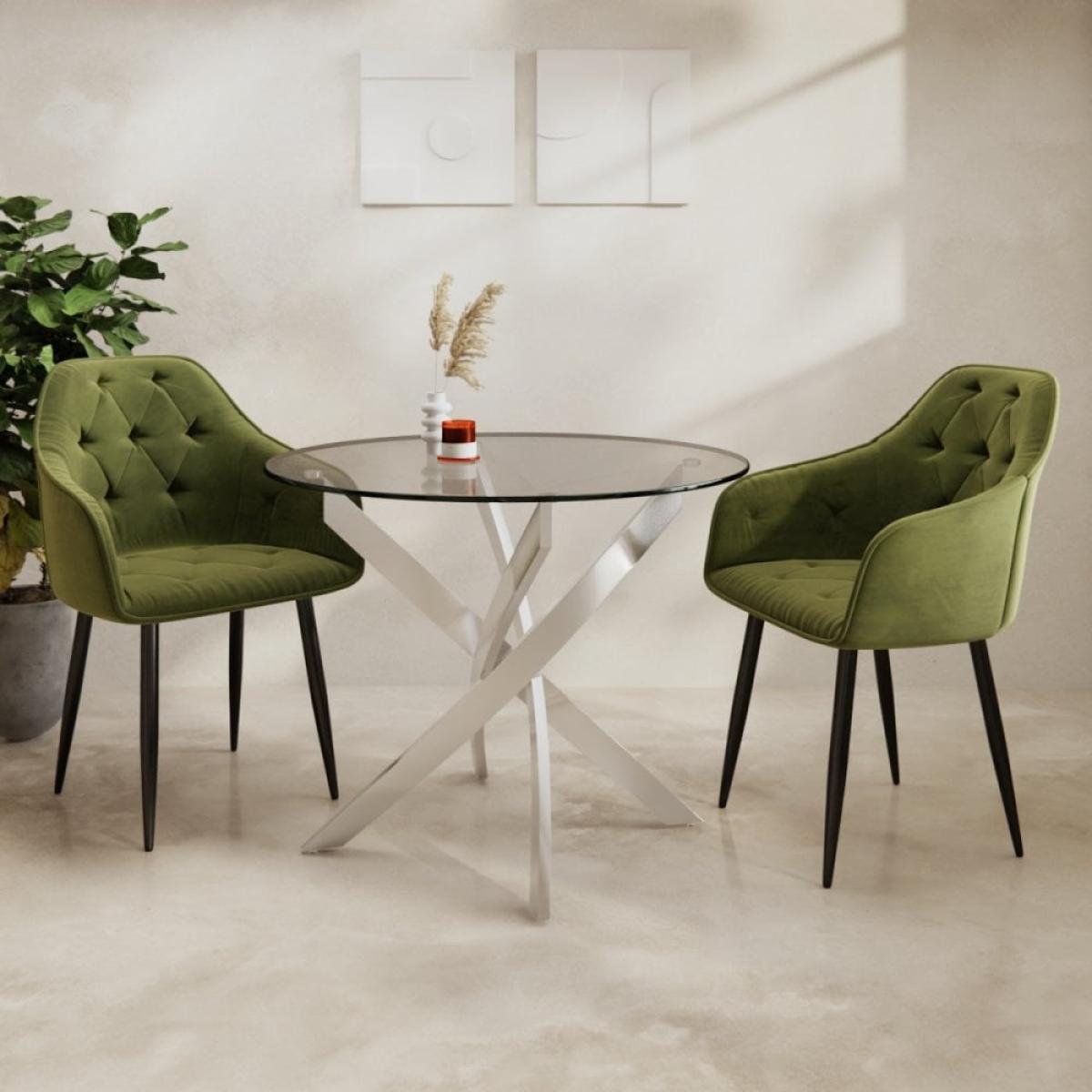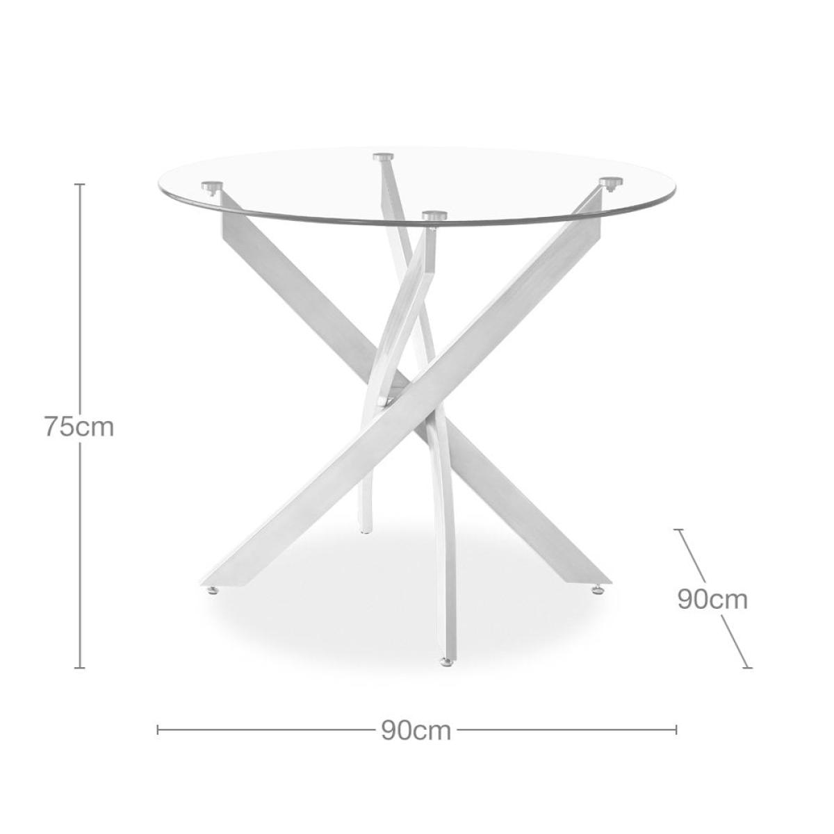 Take your kitchen or dining space to the next level with the Malmo dining table for 4. Perfect for those who want to make a contemporary statement, the Malmo features a round clear glass tabletop and an eye-catching criss-cross brushed metal base.