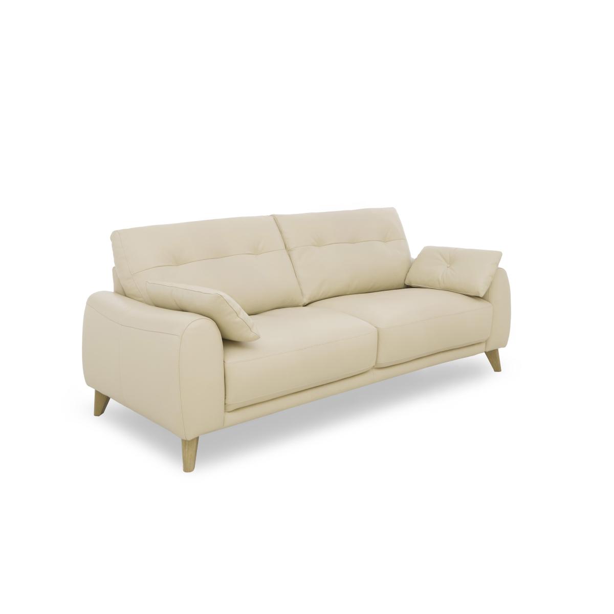 Clean, calming and neutral, Scandi style is everyone’s favourite way to bring home a relaxed feel. Our modern Scandi-inspired Malmo range does exactly that, and adds a touch of luxury to the mix. That comes in the shape of elevated comfort – sprung suspension promises all-over support and wide seats offer generous loungeability – as well as a suite of cool design touches. These include the soft, rounded arm bolsters that come with every sofa and armchair, the simple buttoning that adorns back cushions, and the tapered wooden legs in a choice of finishes. Handcrafted exclusively for Furniture Village, Malmo is available in a huge selection of lovely textured fabrics and 100% leather. Scandi style but in leather? You got it. Modern and relaxed, this very cool and very comfortable three-seater sofa is upholstered in a wide choice of leather grades and colours. Only at Furniture Village. Why you’ll love it Clean lines meet gentle curves in this modern Scandi-style leather sofa. Designed for relaxed living with wide and inviting seats. Sprung for all-over support and improved comfort. Simple buttoning detail complements this sofa’s understated look. 2 arm bolster cushions included. Choice of dark and light wood finish for the legs. Wide selection of 100% leather upholstery grades and colours. Handcrafted for Furniture Village. This 3-seater leather sofa is part of our Malmo range. What you need to know Medium comfort level. Seat suspension: spring. Seat cushioning: foam, fibre and inner coil. Seat cushioning is fixed. Back suspension: webbing. Back cushioning: loose fibre. Back cushioning is fixed. Arm cushioning: foam and fibre. Back cushions and feet are removable for ease of access. Fixed seat and back cushions require smoothing and straightening regularly. To smooth and straighten fixed cushions, punch the back cushion’s top two corners and the seat cushion’s outer two corners, and pinch outwards. Leather has unique marks and characteristics with variation in colour and texture. Leather softens with use. Smoothing the tops of leather cushions prevents signs of visual comfort. Please read our upholstery care guide for more advice. Item code: MALM3S--BV-005